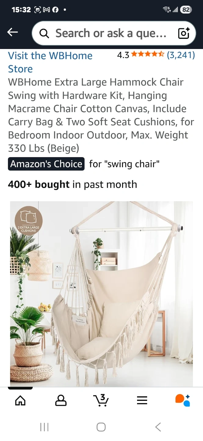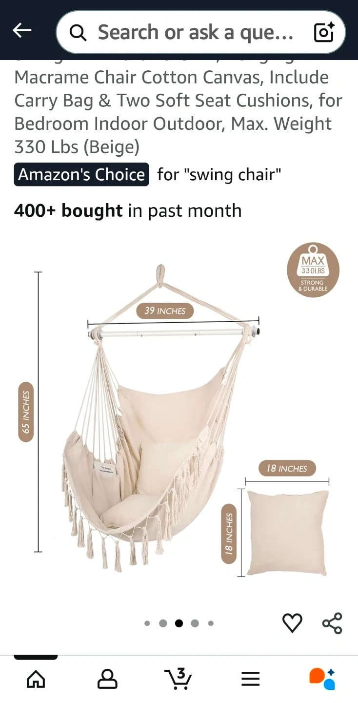 Get comfy with this WBHome extra large hammock chair swing! It's perfect for both indoor and outdoor use.