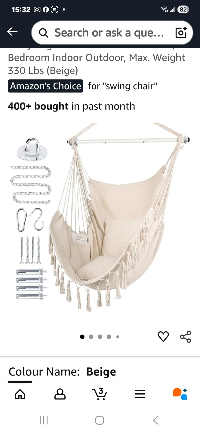 WBHome Hammock Chair Swing - Beige