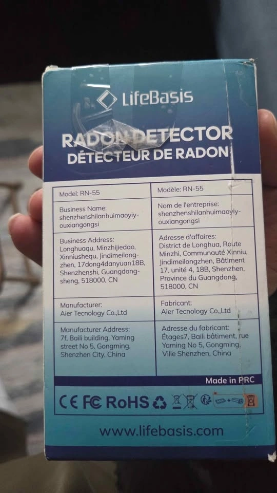 Helpful LifeBasis Radon Detector RN-55. This monitor is battery powered. Great for checking radon levels in your home.