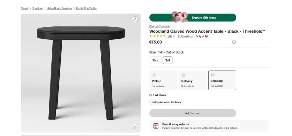27Discontinued Threshold Woodland Carved Wood Accent Table Technically a side/accent table but could be used as a stool. Like new (do look at the photos. The bit of raw wood you see is just how it came.) Orig. $75 Asking $55 OBO Measures 18x18x10" TERMS FOR ALL SALES: - Sales are final / no returns or exchanges. - All items sold in "as-is" condition (whatever condition is described in the listing.) - I include as much detail and as many photos as I can. I always disclose flaws. So please make sure to read the descriptions and look at the photos. - In person pick up only. Has to be you to avoid scams. Pick up location: Parking lot in front of Starbucks (555 S. Dearborn St, 60605) in Printer’s Row. (This makes parking easy. There’s no attendant and since you’re not parking, just doing a quick pickup there’s no worrying about looking and paying for parking.) - Zelle, Venmo or cash only (no cash app or other apps.)