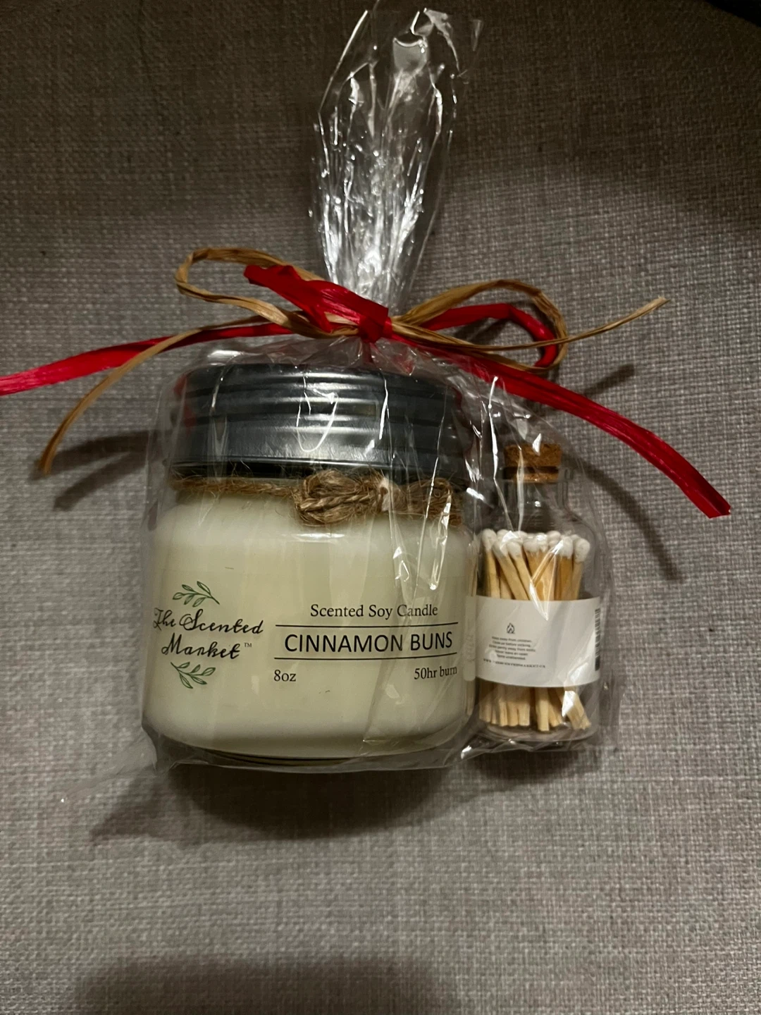 š¤This is a 8oz scented soy candle from The Scented Market in Cinnamon Buns scent.