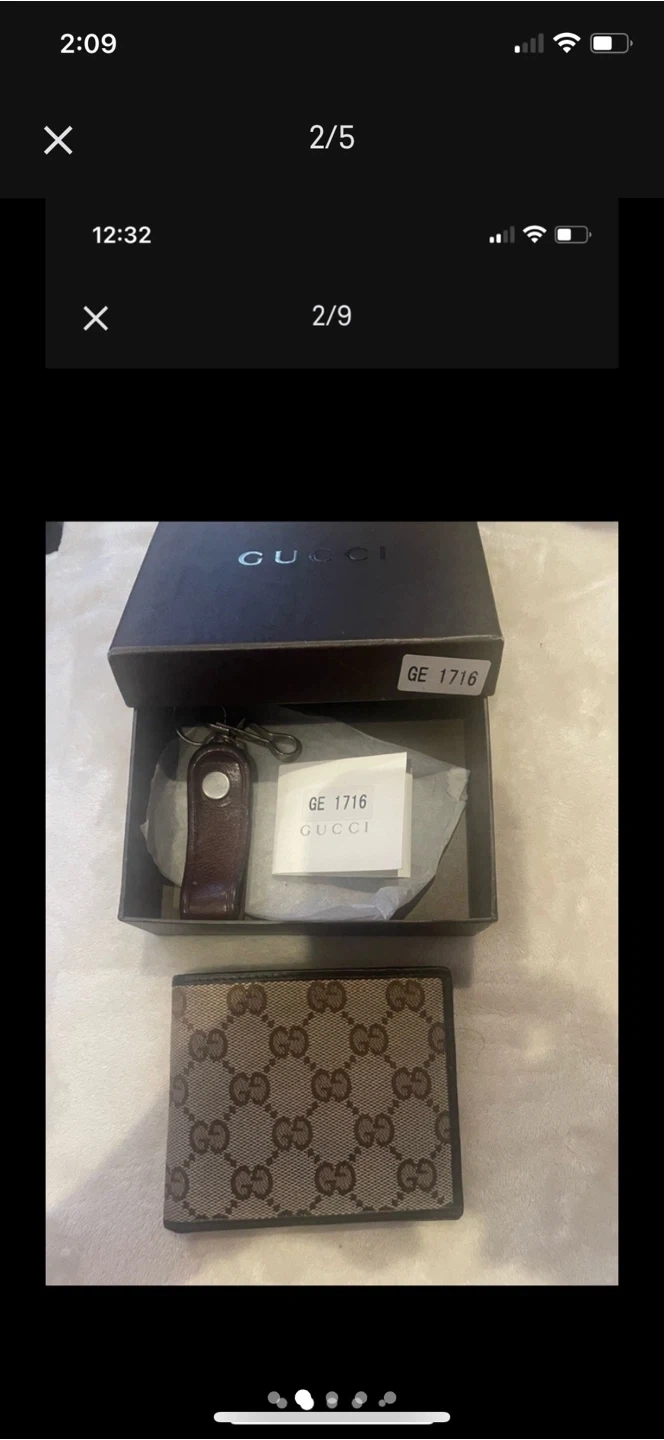 This stylish Gucci wallet is a timThis stylish Gucci wallet is a timeless accessory, featuring the iconic Gucci monogram pattern and a sleek design. The wallet comes with its original box and a matching key chain, adding to its value. The wallet is Brand New There’s same imperfection but doesn’t affect. ID nr. On the package Showing authentity. Here are some of its features: * Classic Gucci monogram * Includes original box * Comes with matching key chain *. Comes with the dust bag Size 34.5 “ to 38.5” longeless accessory, featuring the iconic Gucci monogram pattern and a sleek design. The wallet comes with its original box and a matching key chain, adding to its value. The wallet is Brand New There’s same imperfection but doesn’t affect to use the wallet could be fix very easy! ID nr. On the package Showing authentity. If you need more pictures message me. Here are some of its features: * Classic Gucci monogram * Includes original box * Comes with matching key chain *. Comes with the dust bag Size 34.5 “ to 38.5” long