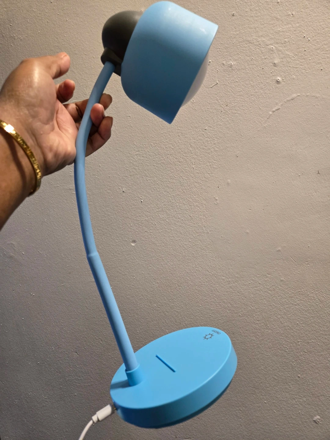 This is a blue LED desk lamp with a flexible gooseneck. ✨️🛋 DIMMABLE
