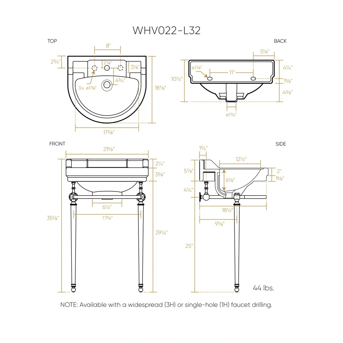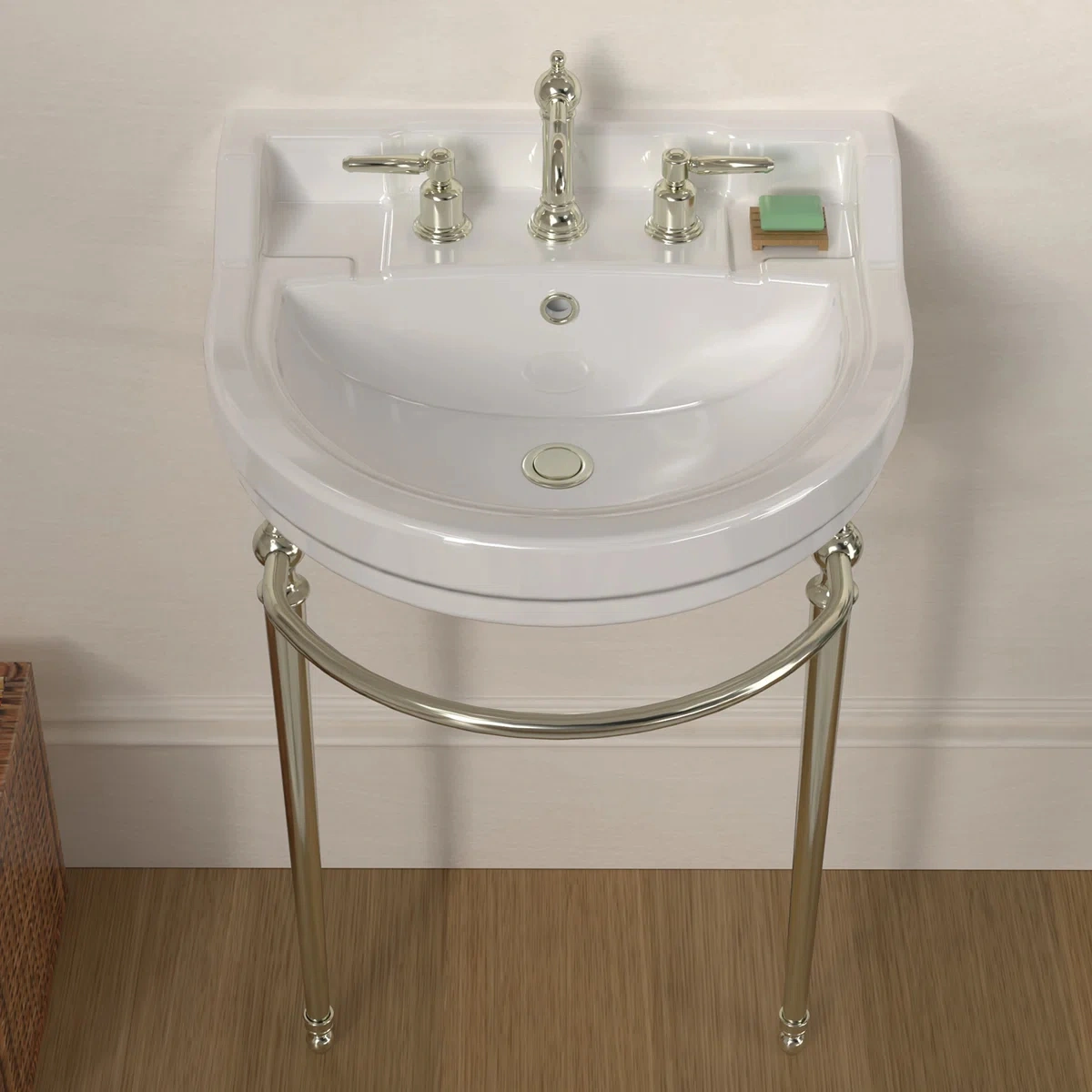 Featuring a classic English-inspired design, this piece seamlessly blends timeless elegance with modern functionality. The refined semi-circular basin, paired with solid brass leg supports, creates a striking focal point in any bathroom. With a rear centre drain placement and customizable faucet drilling options, including single-hole and widespread configurations, it offers flexibility to suit various faucet styles and preferences. Available in a range of luxurious finishes, it allows homeowners to tailor their bathroom aesthetic to complement both traditional and contemporary themes.