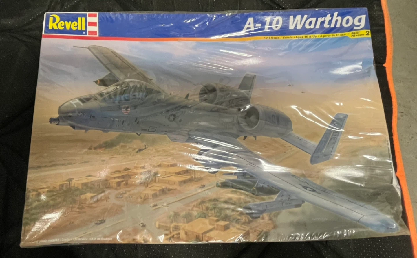 This is a Revell A-10 Warthog model kit. It's a 1/48 scale model recommended for ages 10 & Up. The skill level is 2.