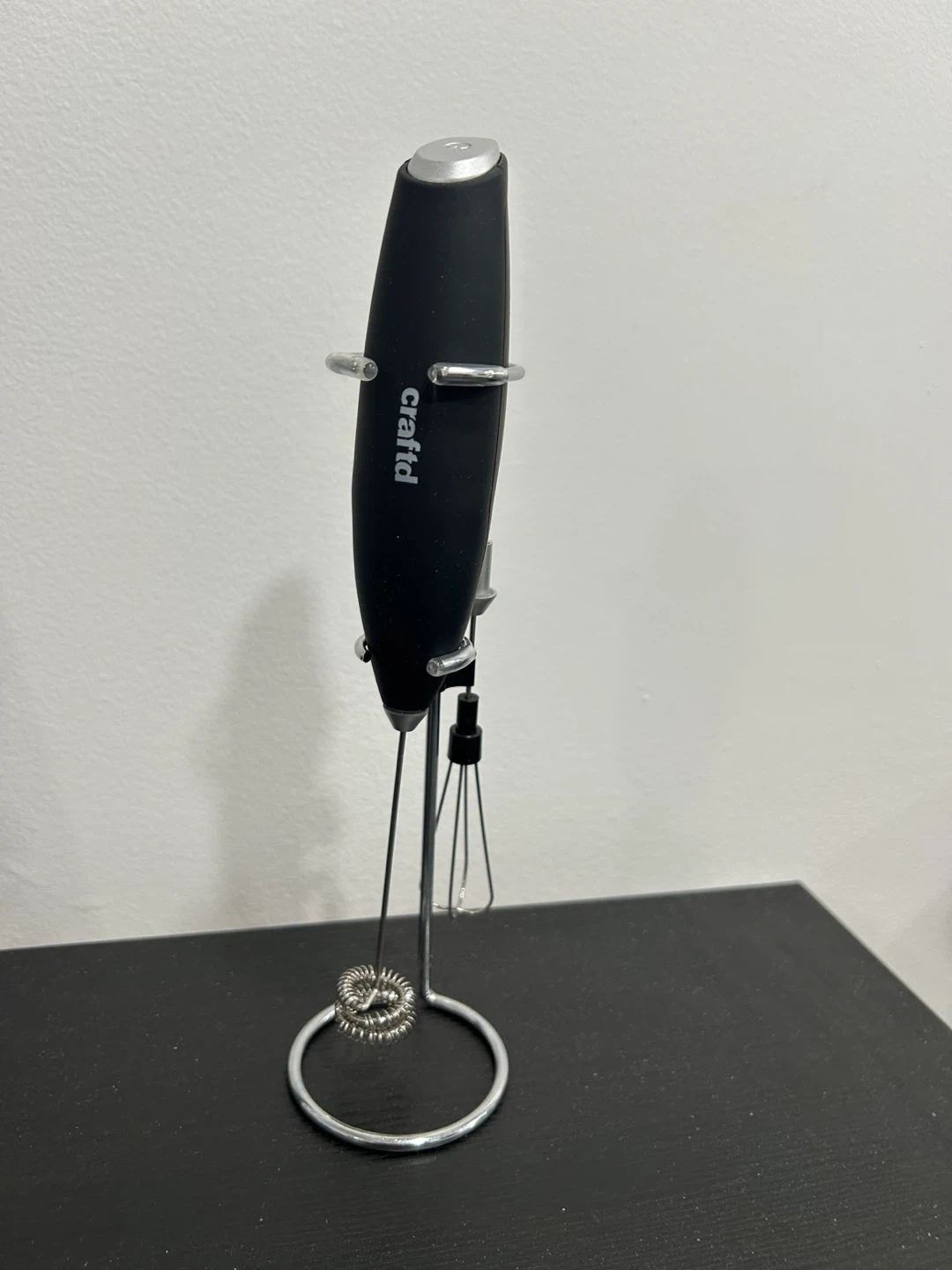 This handheld milk frother by Craftd is perfect for creating creamy foam for your lattes and cappuccinos. It includes a whisk attachment for versatile use. Its compact design makes it easy to store and use!
