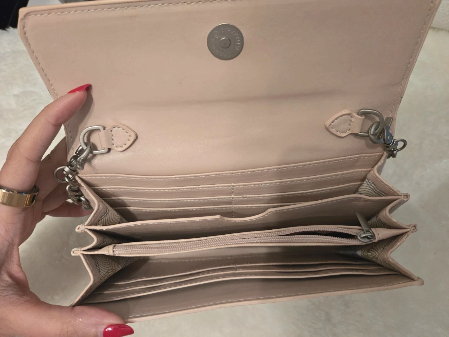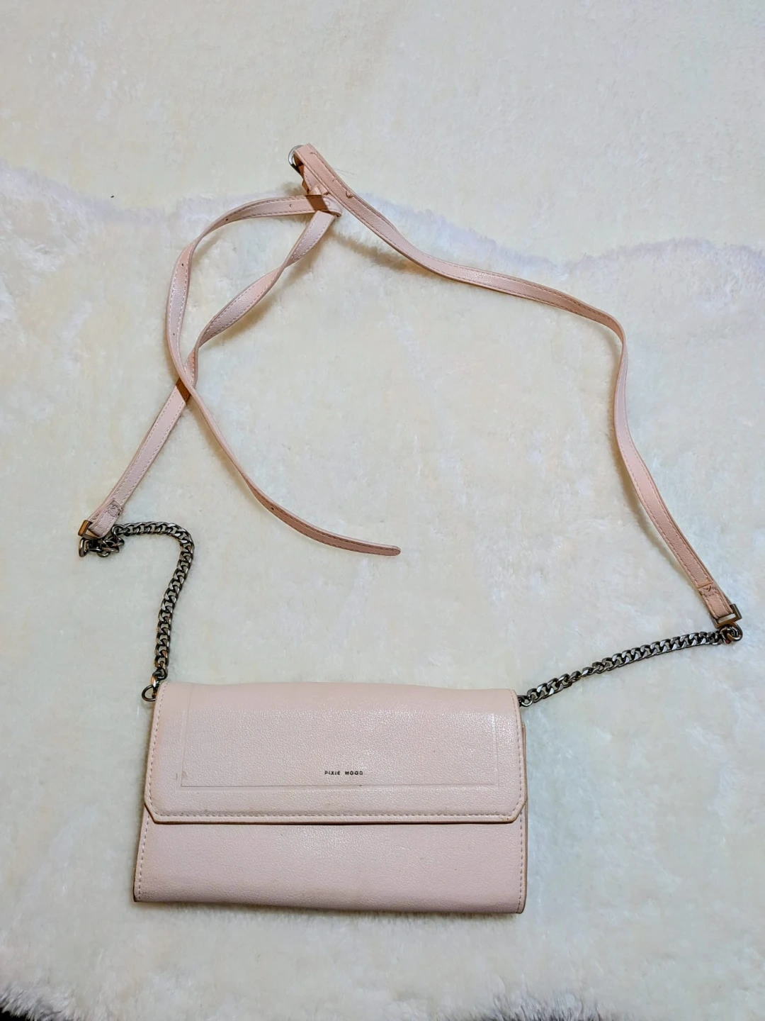 This Pixie Mood crossbody wallet is a lovely pale pink. It features multiple card slots and a zippered coin pocket. It's perfect for keeping your essentials organized on the go!