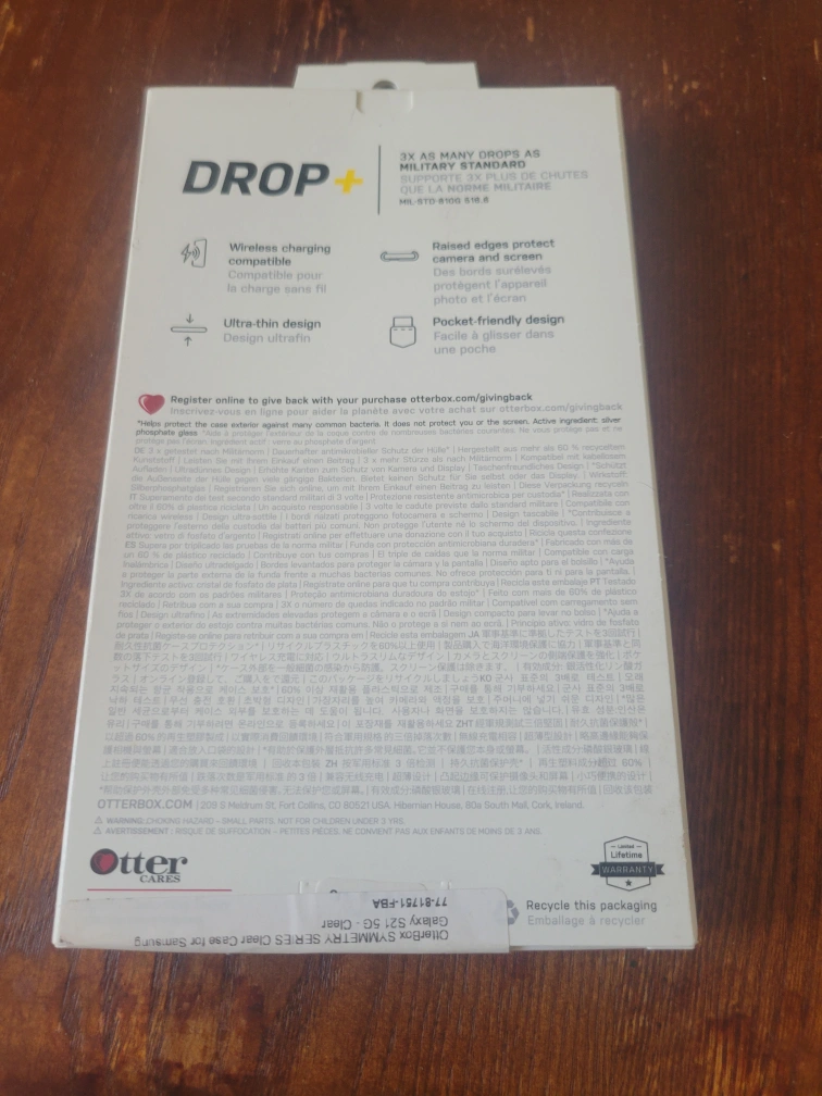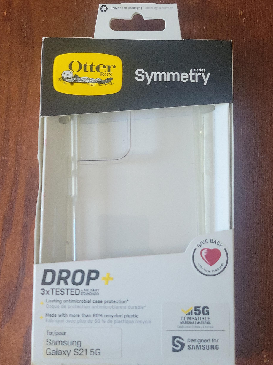 Selling a brand new Otterbox Symmetry Series Clear Case for the Samsung Galaxy S21 5G! This case offers 3x military standard drop protection and has an antimicrobial case protection, ensuring your phone stays safe and clean. It's made with more than 60% recycled plastic, so it's an eco-friendly choice too! It also supports wireless charging and has a pocket-friendly design. Comes in the original packaging.