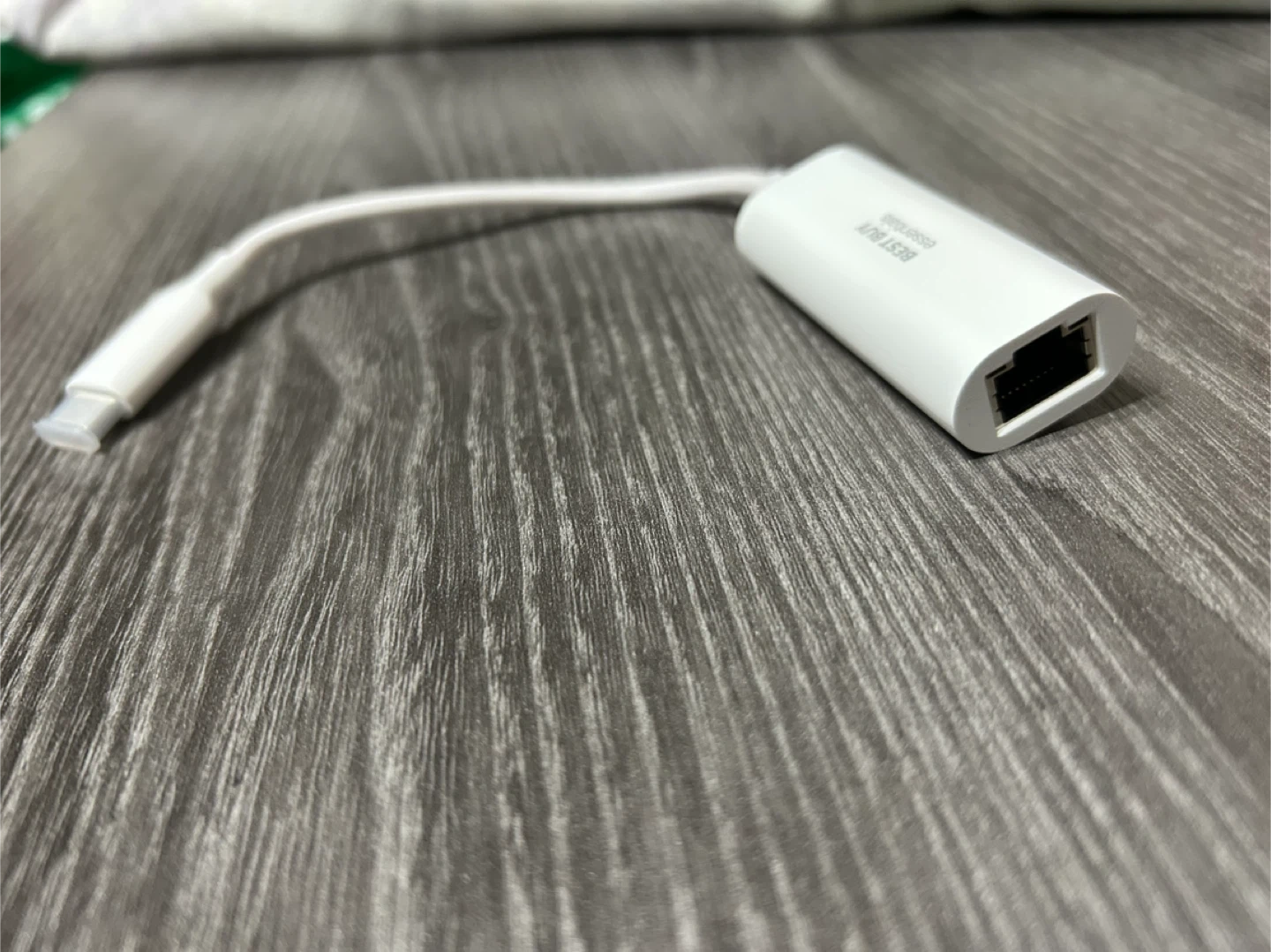Connect your USB-C device to a wired network with this adapter. It's white and made of plastic. This adapter is great for stable internet connections when Wi-Fi isn't ideal.