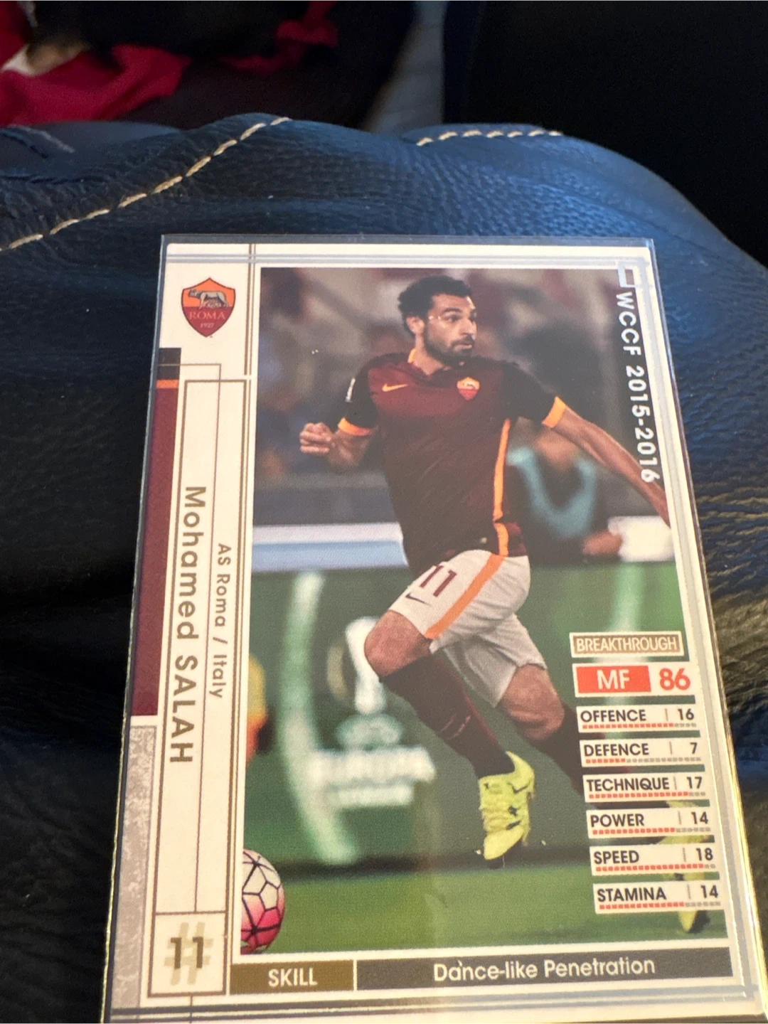 Selling a Mohamed Salah Panini card. The card is in great condition and features Salah in his AS Roma kit. Perfect for any football fan or card collector!