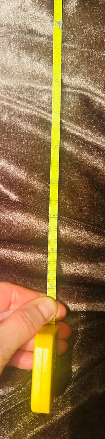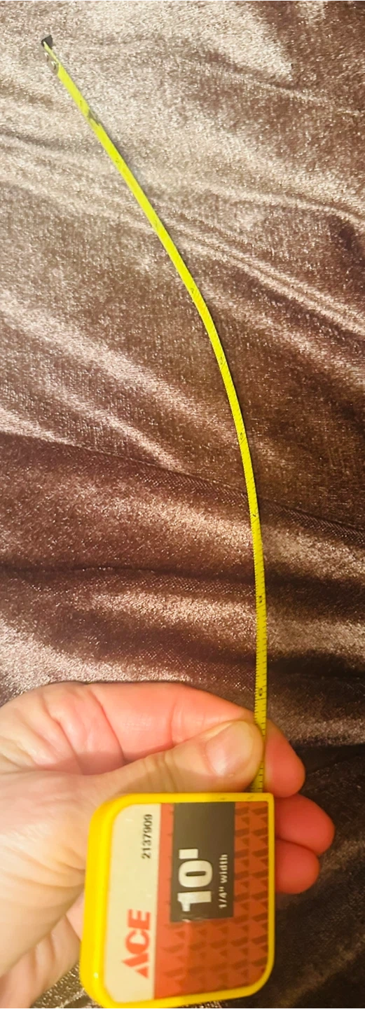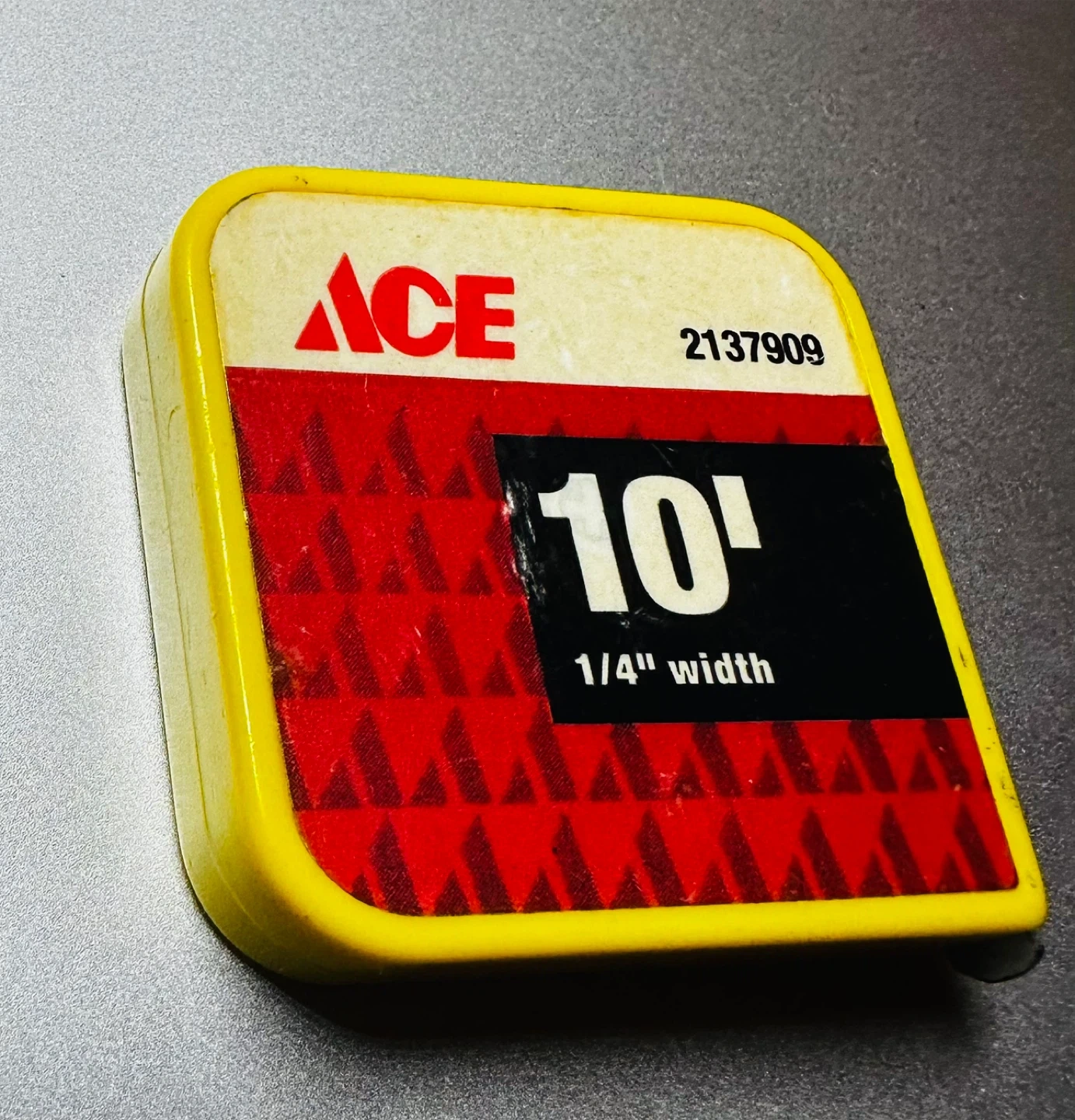 This is an Ace brand 10-foot tape measure. It's 1/4" wide. This compact tape measure is useful for quick measurements around the house or for small projects.