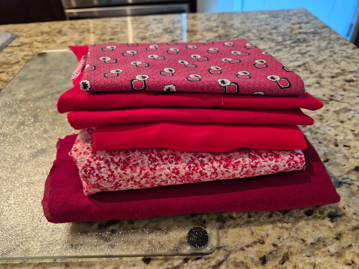 In search of color red or purple fabric for a sewing project. Solid colours or patterned materials but need be cotton or blend-no stretch. For a community group. Pictured material not for sale. I can pick up in local tricities if u r doing a destash.
