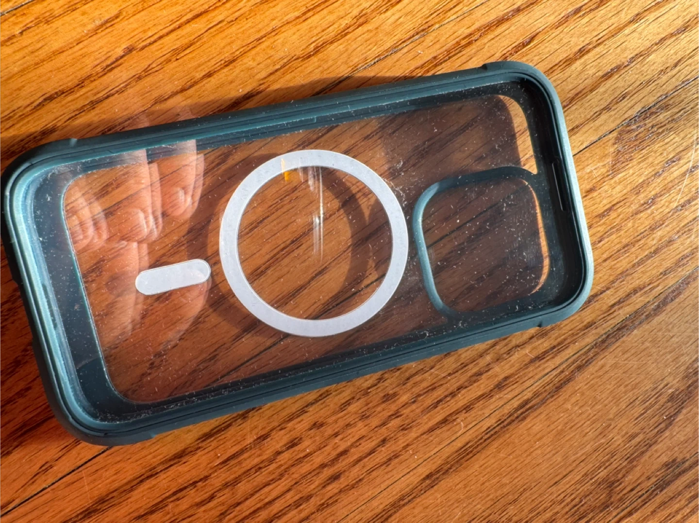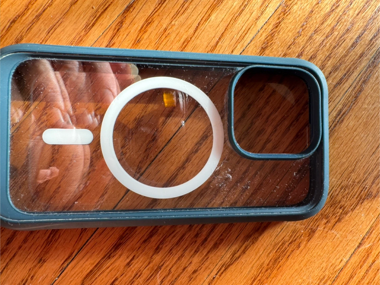 This is a MagSafe compatible phone case. It's designed for iPhones and features a clear back with a blue frame. The case provides protection and maintains MagSafe charging functionality.