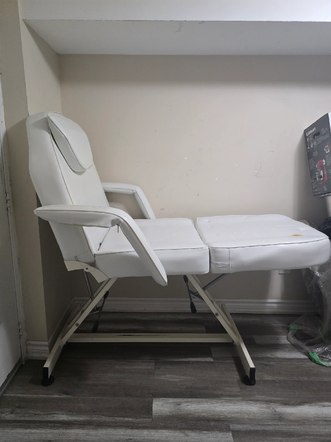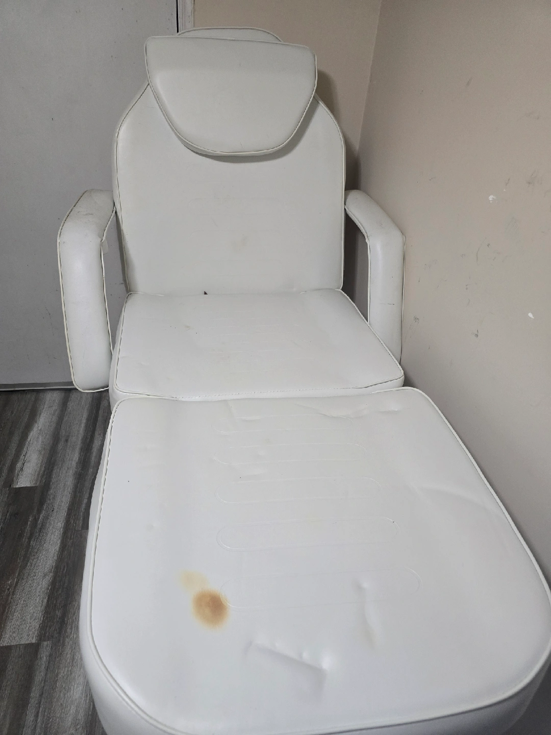 Selling a white facial bed/spa chair. It has some signs of use. Perfect for a home spa or salon setup