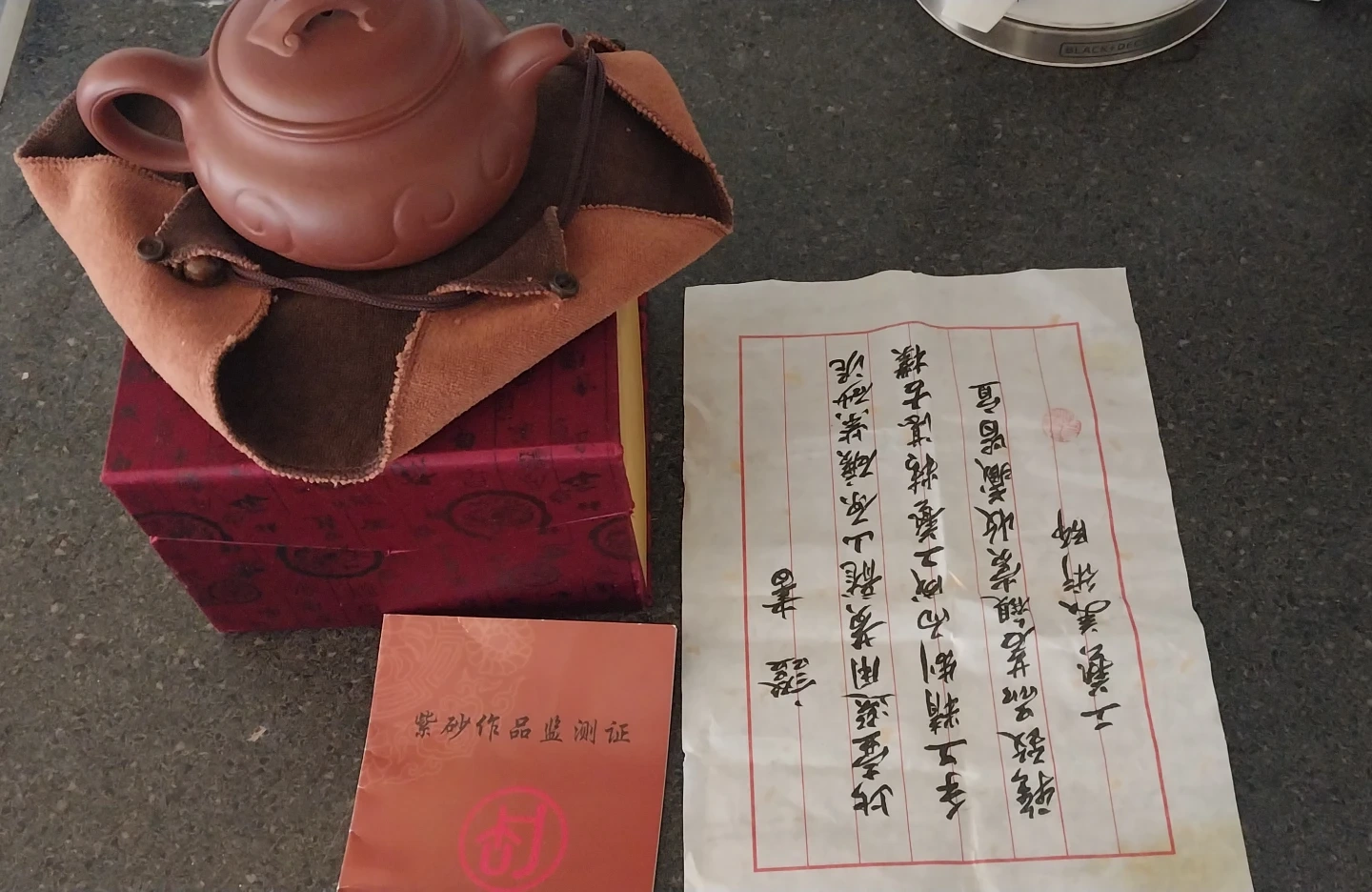 Selling a beautiful brown clay teapot that comes with its original box and a soft cloth wrap for protection. It's a unique piece, perfect for tea enthusiasts or collectors. The teapot is in great condition and ready to be enjoyed