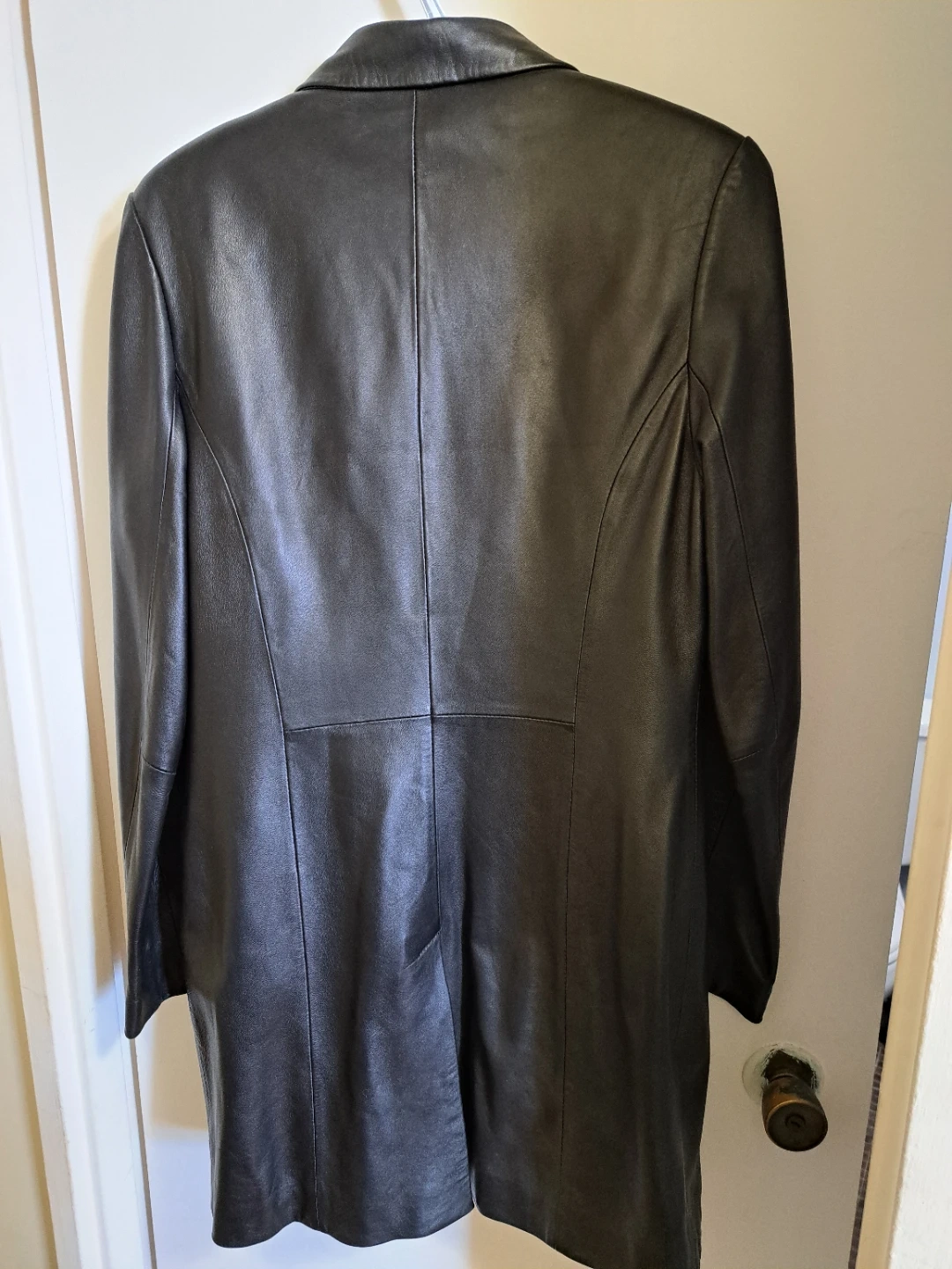 Classic black leather jacket from Danier Canada. It's a size S/P, perfect for cooler weather. This timeless piece offers a sleek look. Women's outerwear. Small inner liner, short.