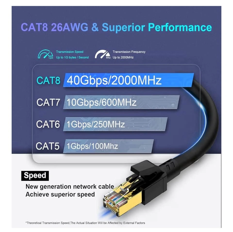 Cat 8 Ethernet Cable, 2 Pack. Outdoor & Indoor use. Faster than Cat6/Cat7. High Speed 26AWG Internet Cord, 40Gbps, 2000Mhz. Shielded Direct Burial RJ45 Network Cable. Weatherproof & UV Resistant.