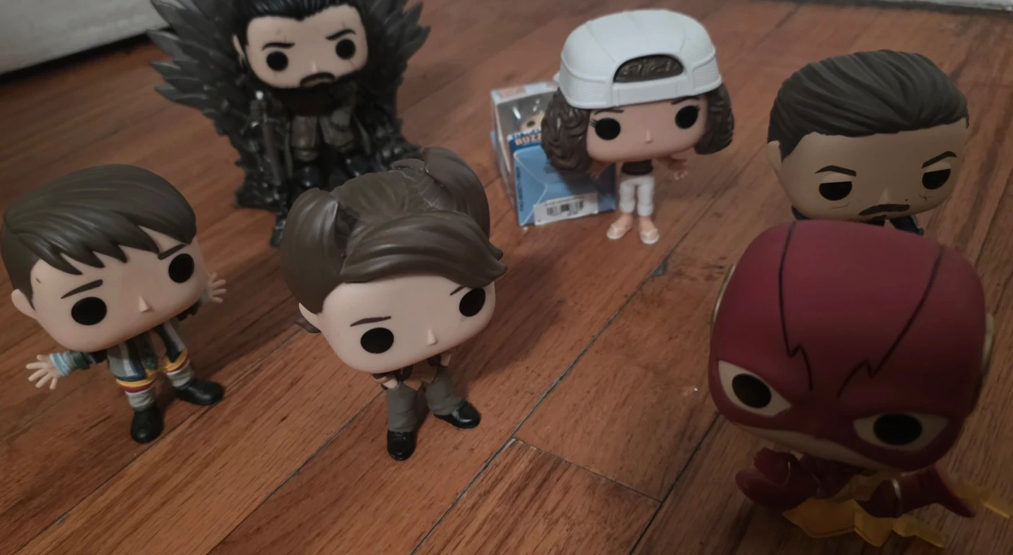 This is a Funko Pop! vinyl figure of The Flash. It depicts the character in a running pose. It's made of vinyl. Just the figures no box