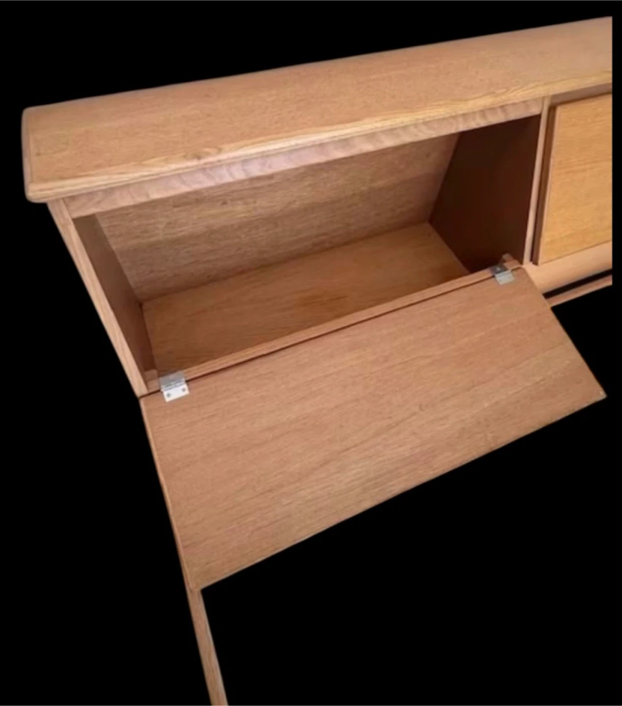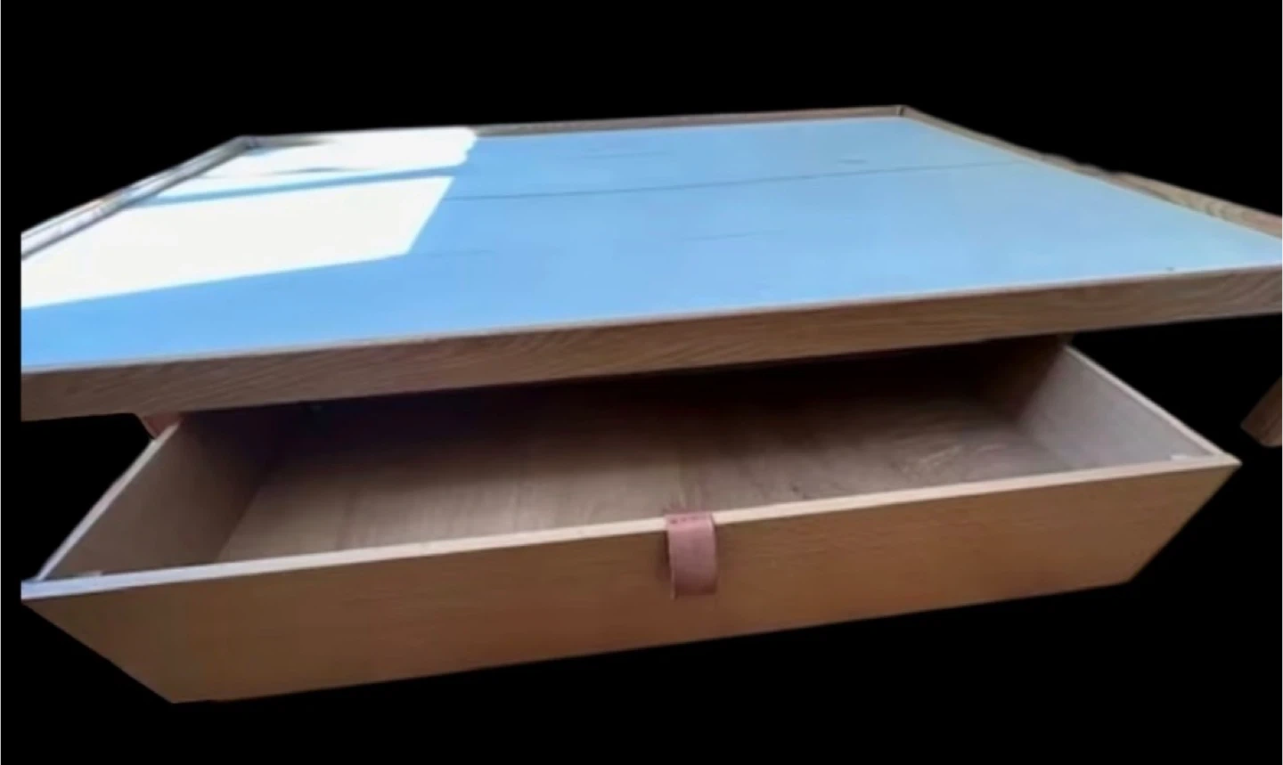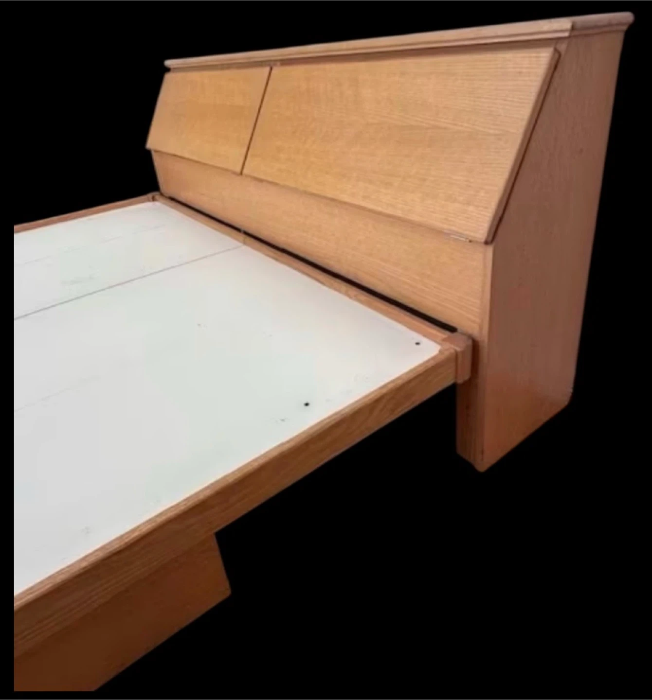 Giving away a queen sized oak platform bed which has a lot of storage. (Mattress not included) It has a free standing headboard which has two large storage sections, as well as two large drawers under the bed. The platform, itself, is in two sections, to make it easier to transport. Each section of the platform is 31" wide x 83"long. The headboard is 30" high and 12" deep in the widest section. The photos will make this clear.