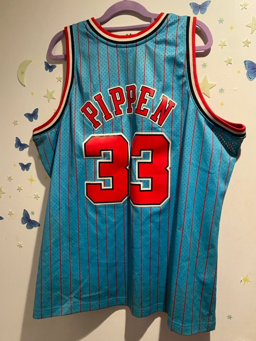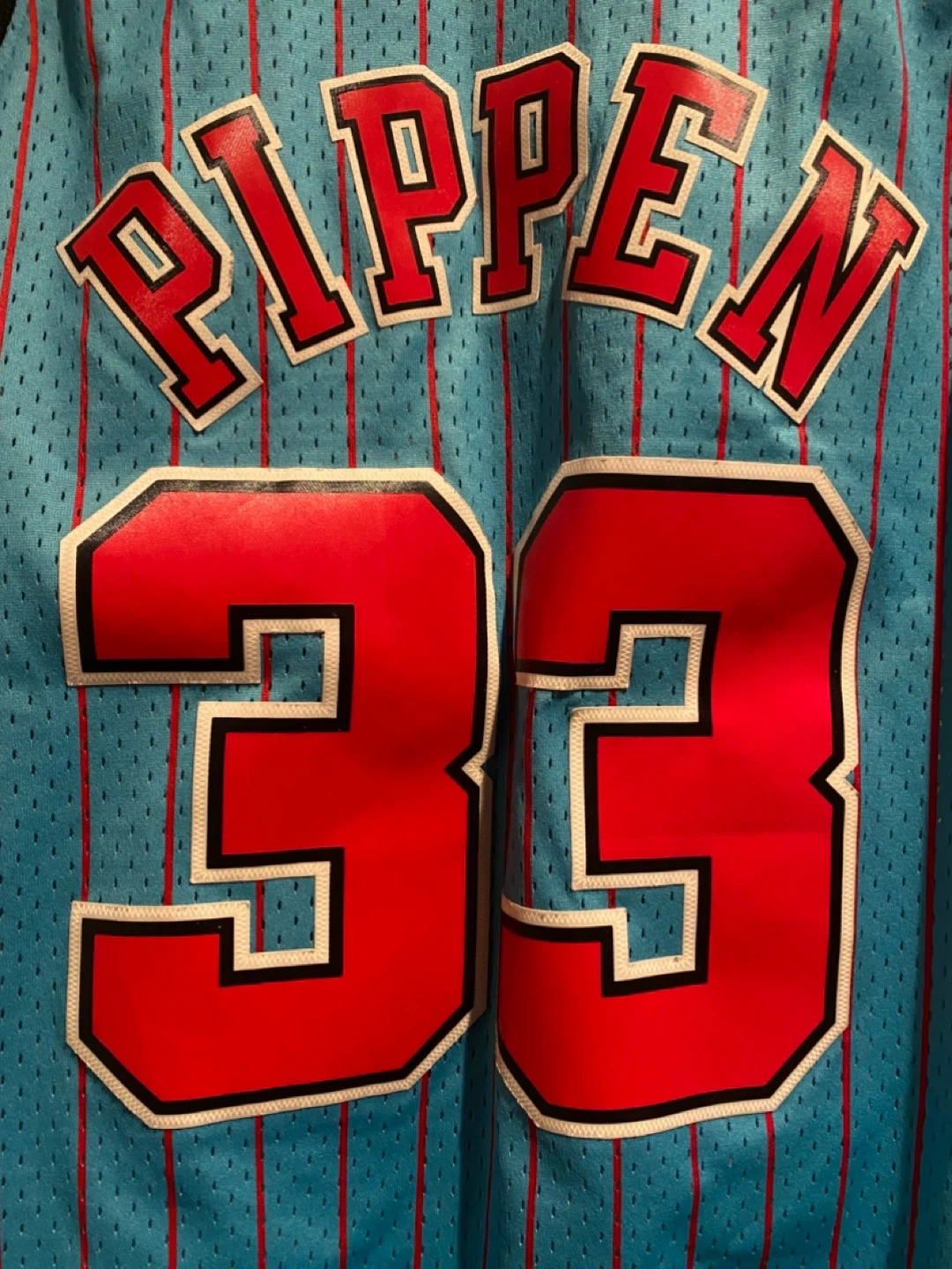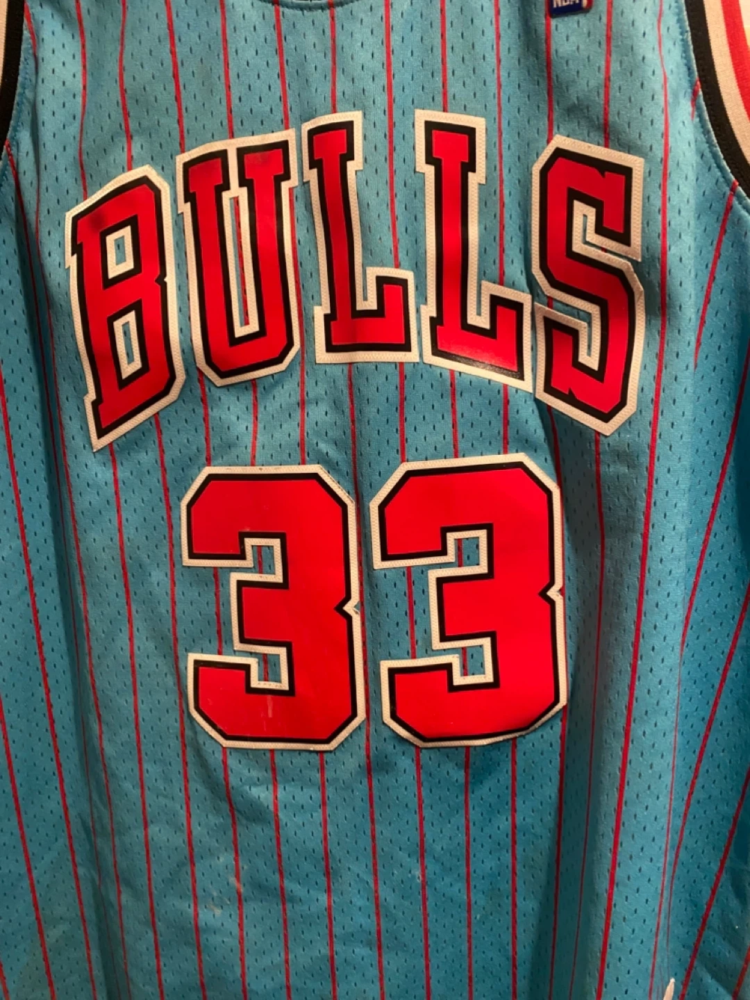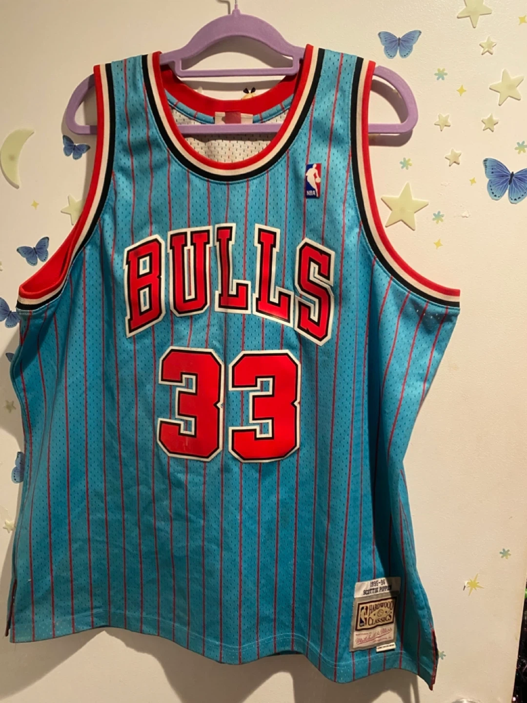 This Mitchell & Ness Hardwood Classics jersey commemorates the 1995-96 Chicago Bulls season. It features Scottie Pippen's name and number 33. Made in China. Swingman collection.