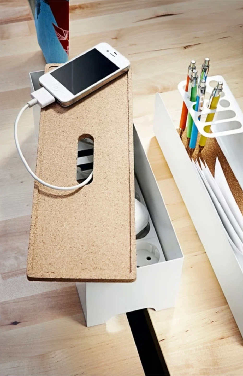 Cable Management Box with Cork Lid