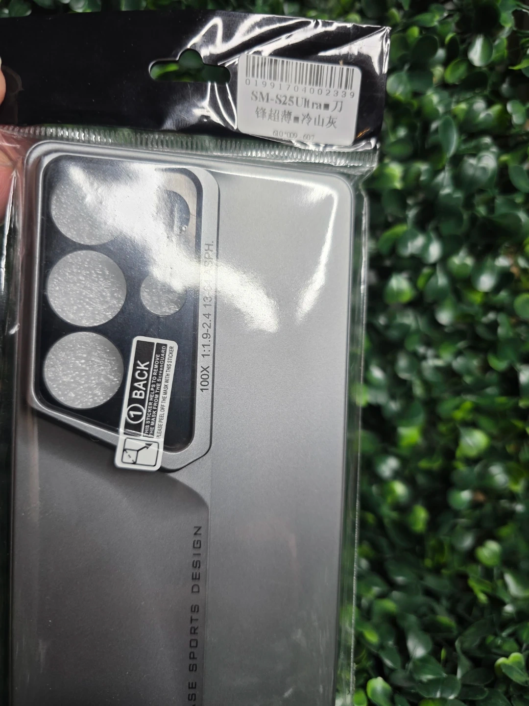 This is a phone case designed for the SM-S25 Ultra model. It's a cool gray color with a slim design. The case features a camera lens protector for enhanced photography.