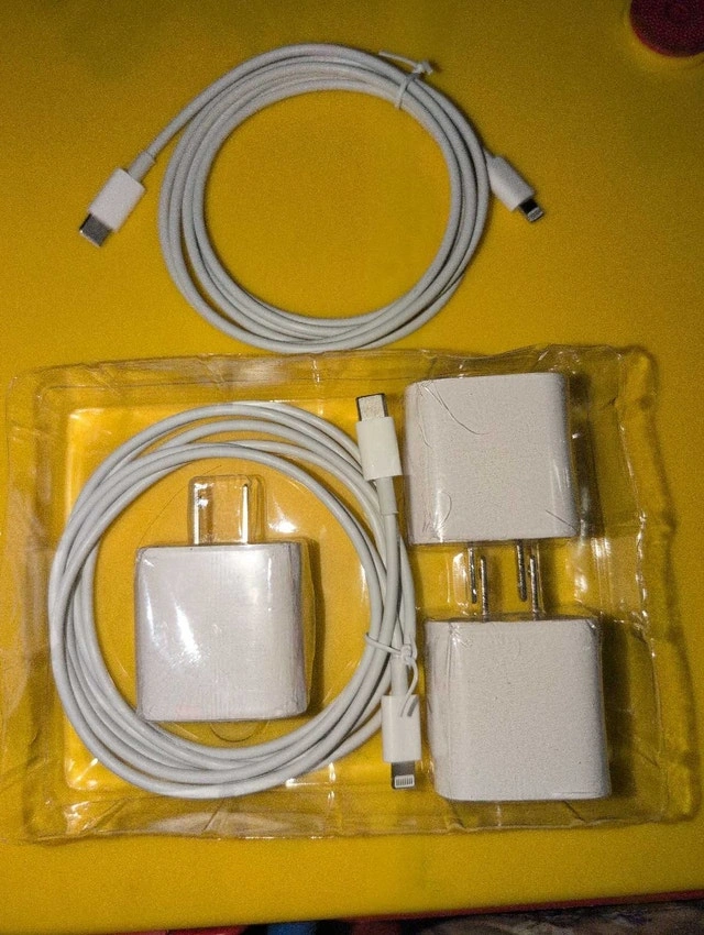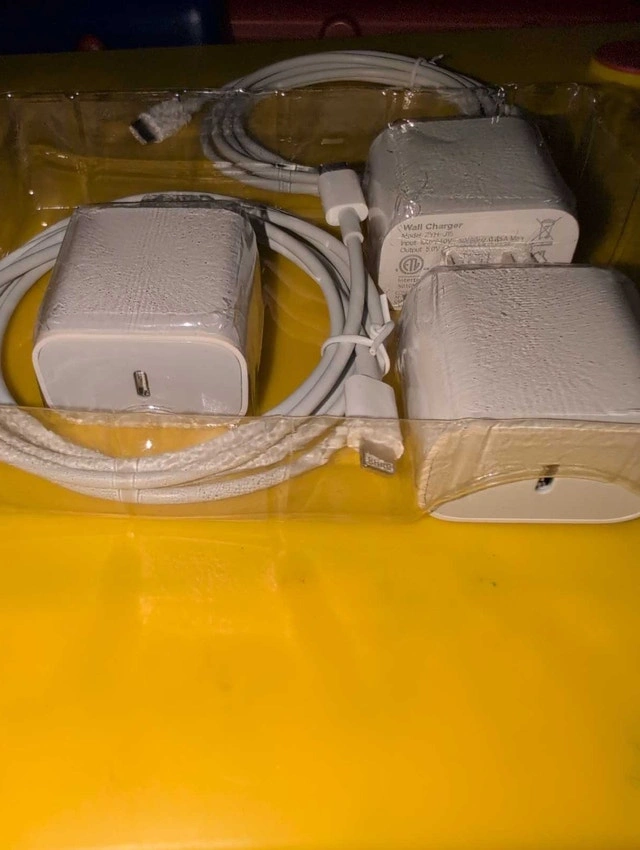 This is a brand new, still in the packaging, Apple USB-C power adapter and cable. It's perfect for charging your iPhone, iPad, or other USB-C devices quickly and efficiently. Each is $15, or 3 for $40. Cash or cashless payment accepted.