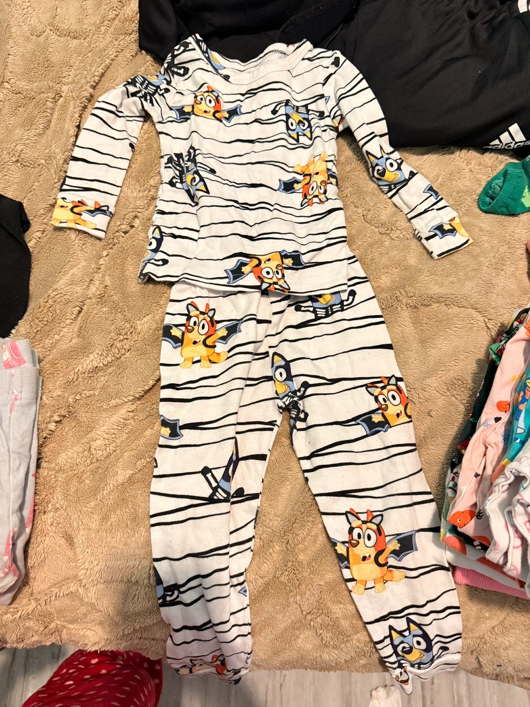 Buy & SellBluey Pajamas Size 4TBluey Pajamas Size 4T$4Bluey character pajamas set. Features a long-sleeved shirt and pants with a Bluey print. Made in Vietnam. Snug-fitting and flame resistant.ConditionLike newAge3-5 yearsWHERE TO MEETCheck LocationView MapSELLERverifiedTriciaClinton Hill720 reviews0 chats·0 favorites·2 viewsSEND CHAT TO SELLERHi Tricia! I’m interested in your listing.Hi Tricia! I’m interested in your listing.Get the Karrot app to chatSign In to chat