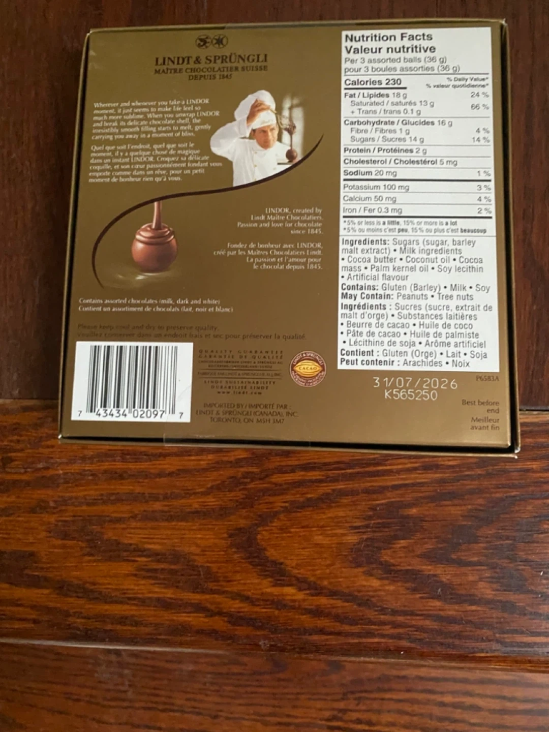 Assorted Lindt Lindor chocolates with irresistibly smooth L'infini fondant centres. This box contains 108g of chocolates. Best before 31/07/2026.