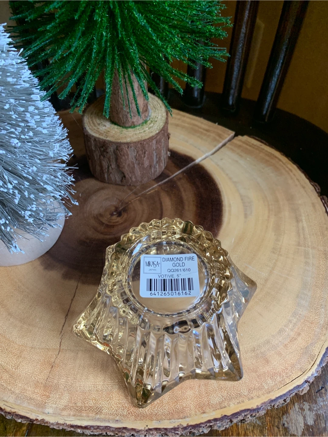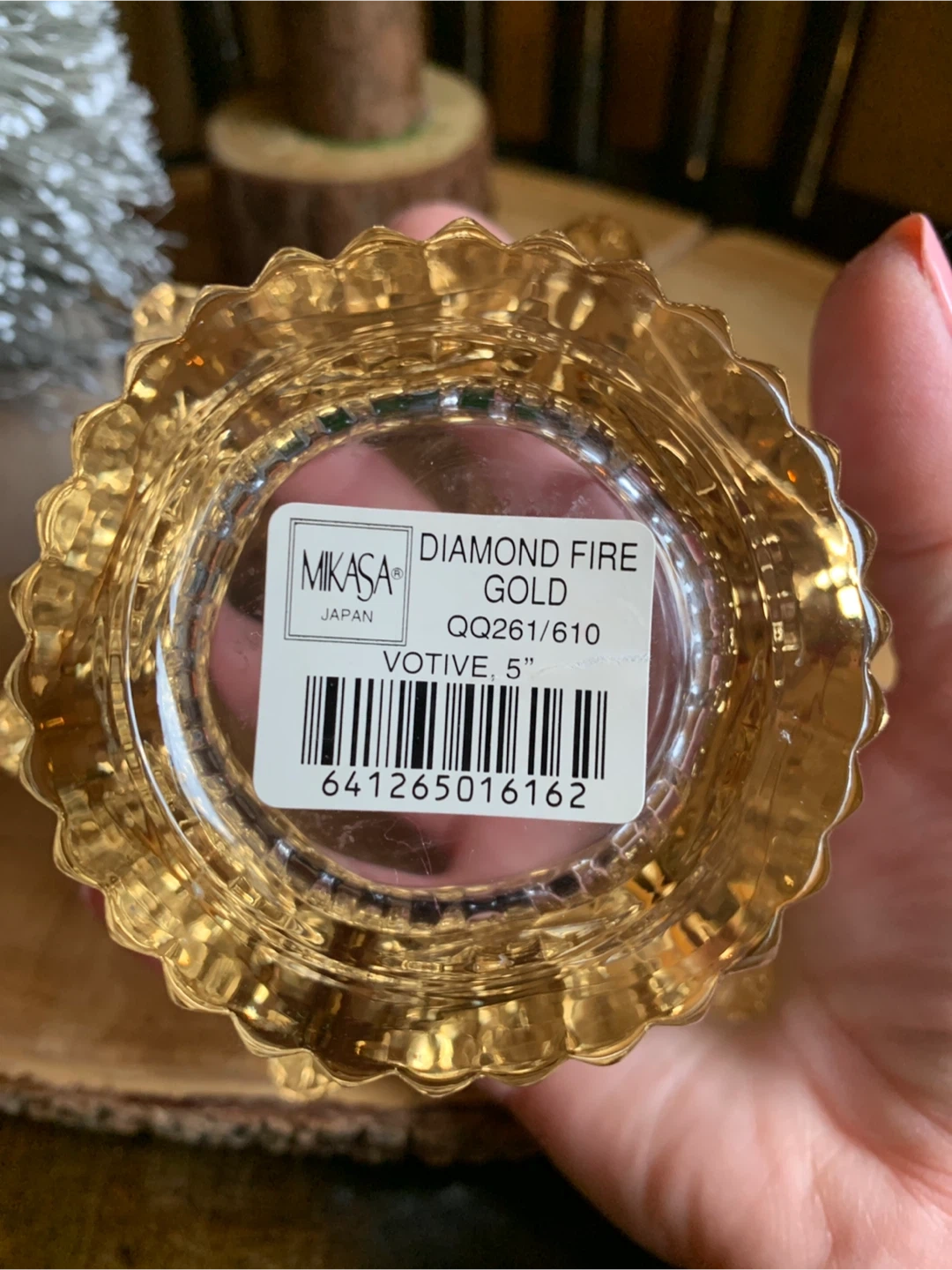 Mikasa Diamond Fire votive holder in gold.