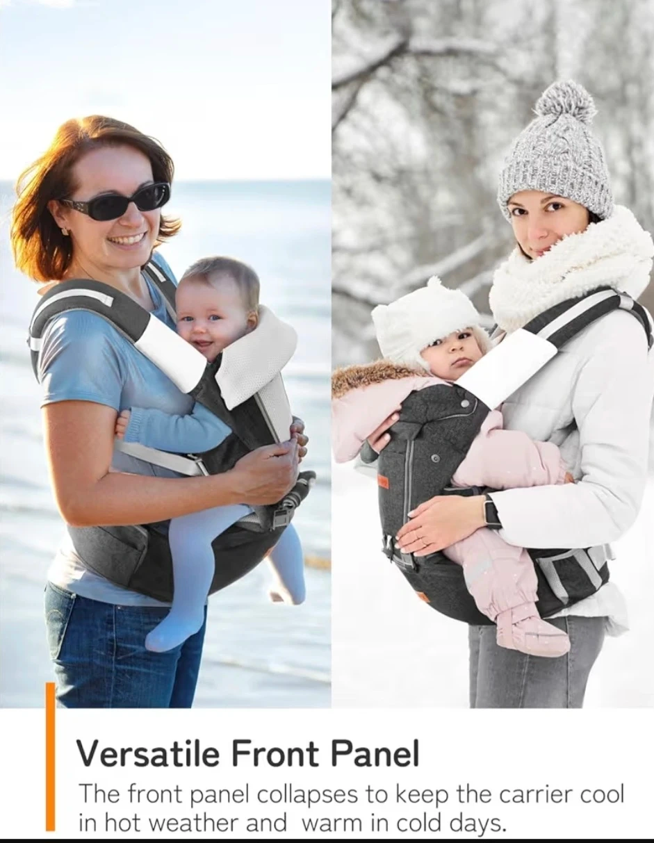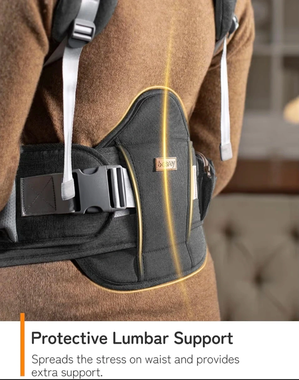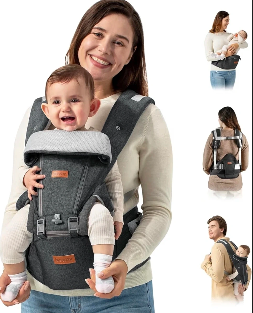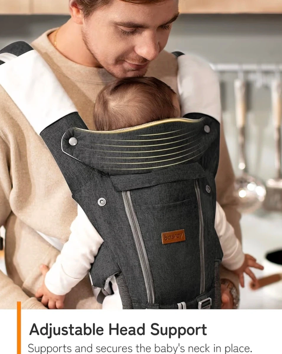 This Besrey baby carrier offers multiple carrying positions, including a hip seat and wrap carrier option. It features protective lumbar support for comfortable wear. The versatile front panel can be adjusted for different weather conditions. It also has adjustable head support for your baby's neck.