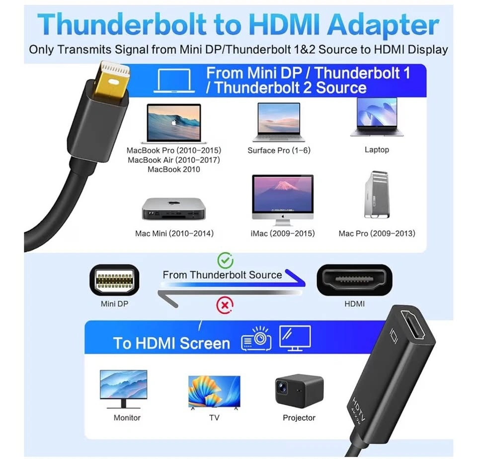 Mini DisplayPort to HDMI Adapter 2 Pack, 4K@30Hz Mini DP to HDMI Adapter, Gold-Plated Thunderbolt to HDMI Converter Compatible with MacBook Air/Pro, Microsoft Surface Pro/Dock, Monitor, Projector. Feel free to message if you have any questions!