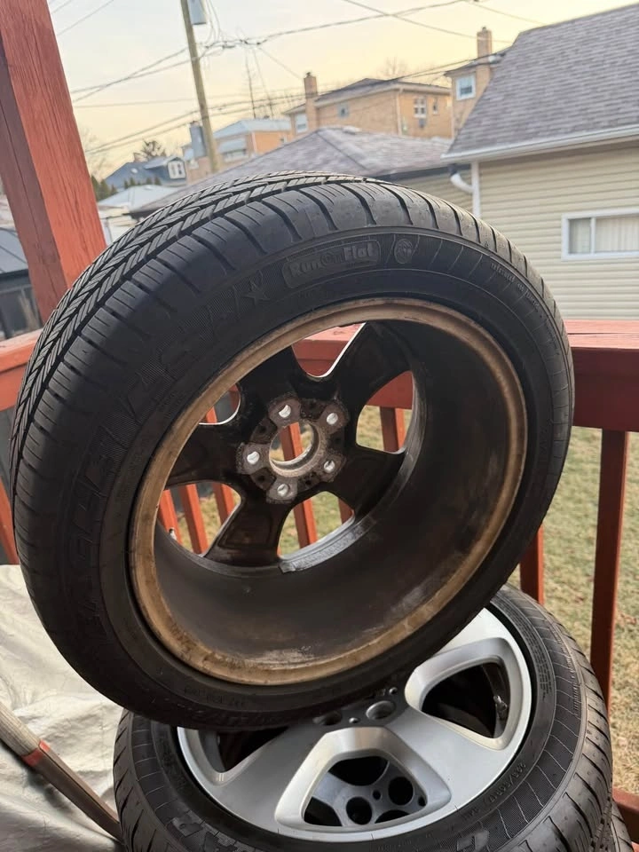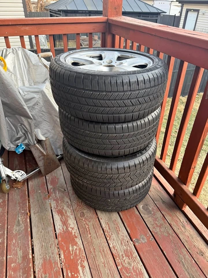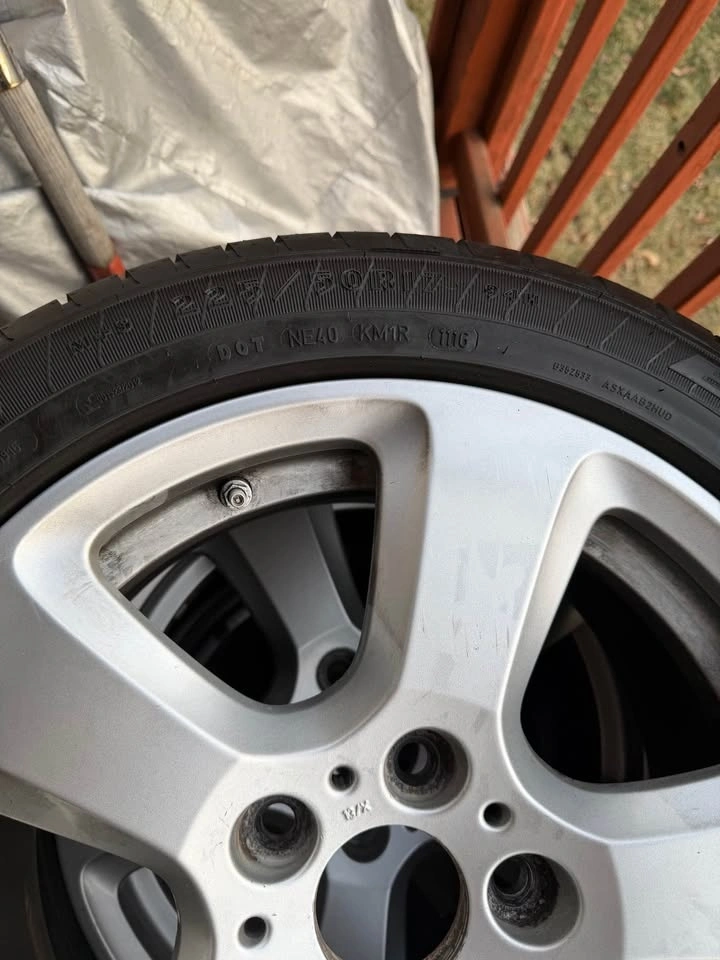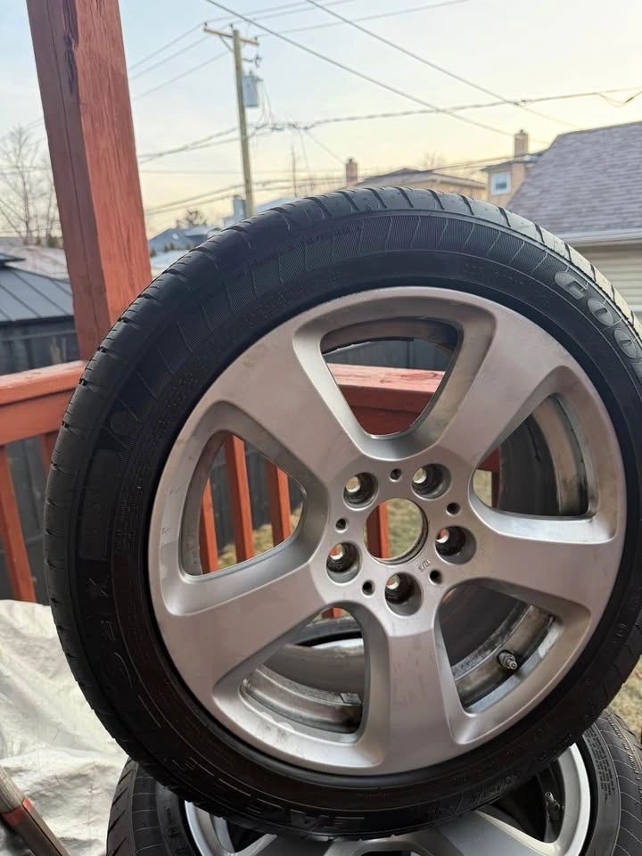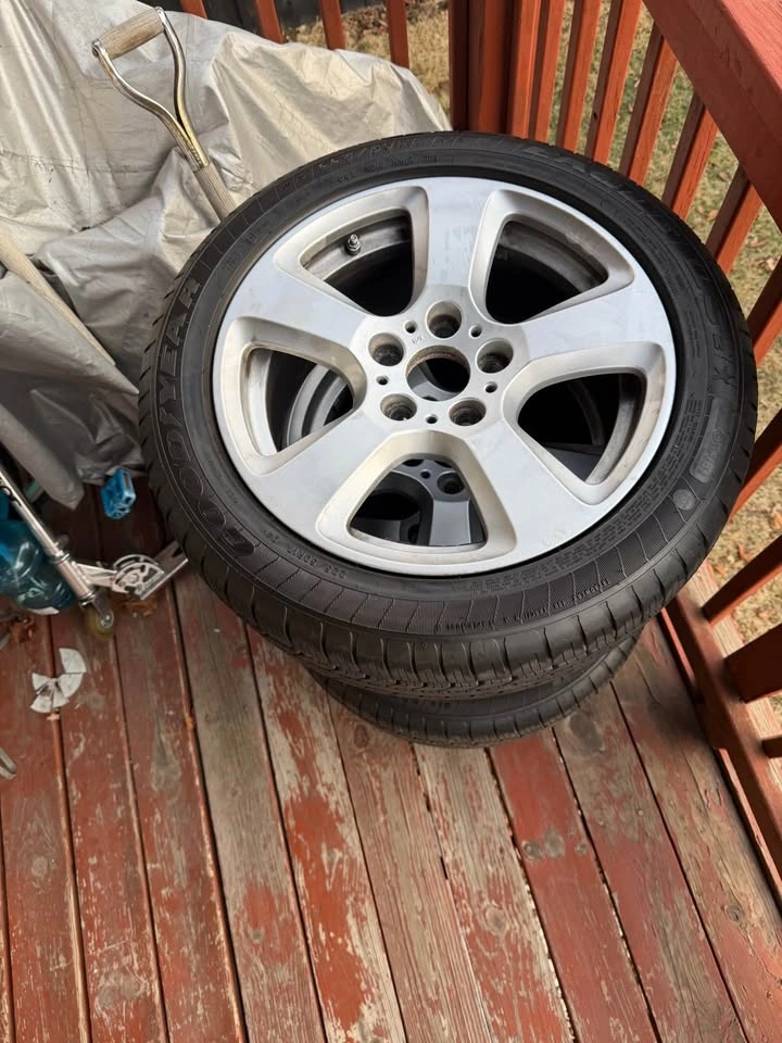 Four Good Year Tires. Tires are in great condition with clean aluminum, BMW rims included. Sipes and grooves are fully intact and not worn. Tire size is 225/50R17 with a load/speed rating of 94H. The wheel size is 17-inch with a 5x120 bolt pattern. Feel free to message if you have any questions!