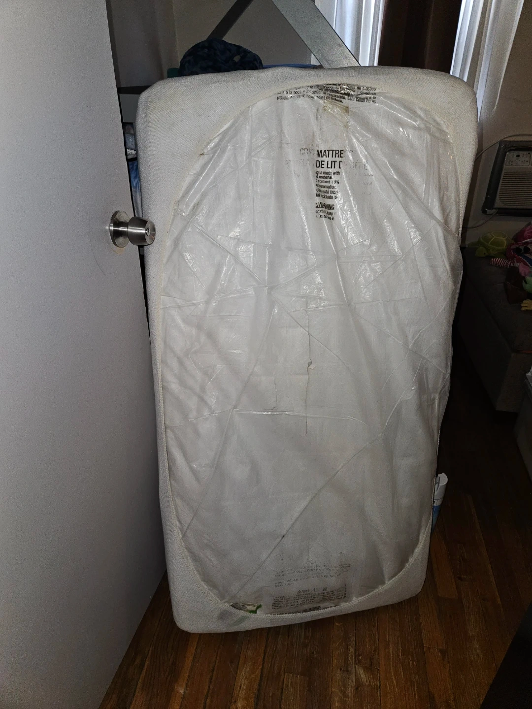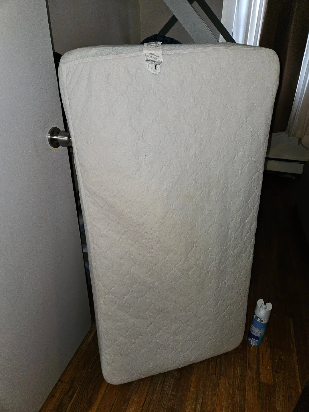 This crib mattress is like new. Plastic cover from purchase is still on. No stains, Smoke free home, nice & firm.