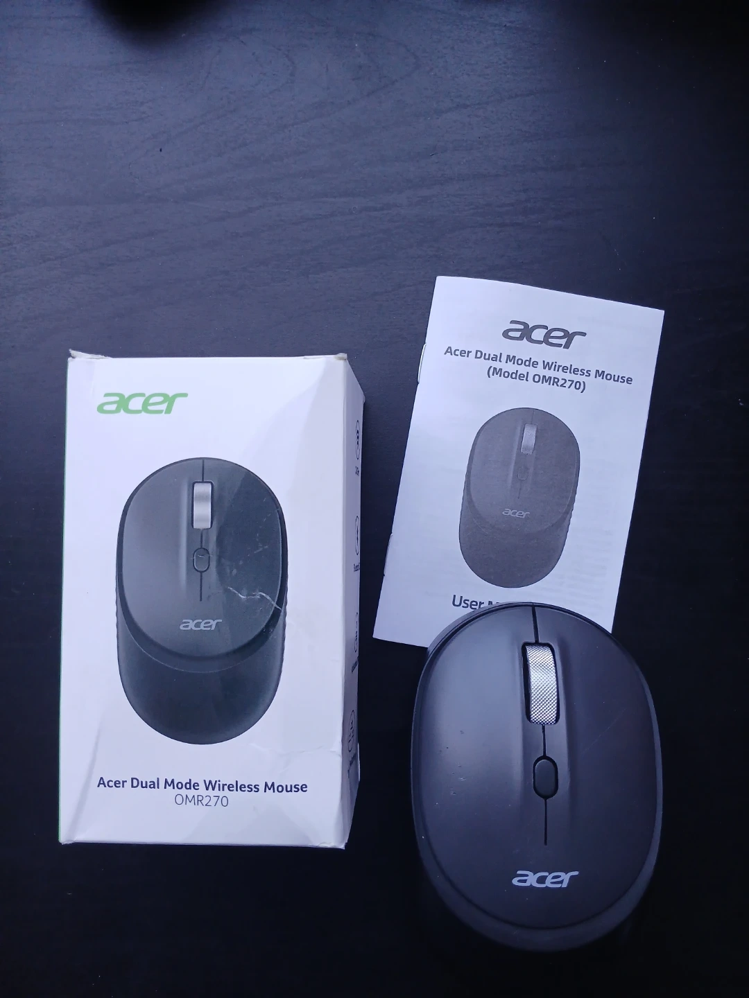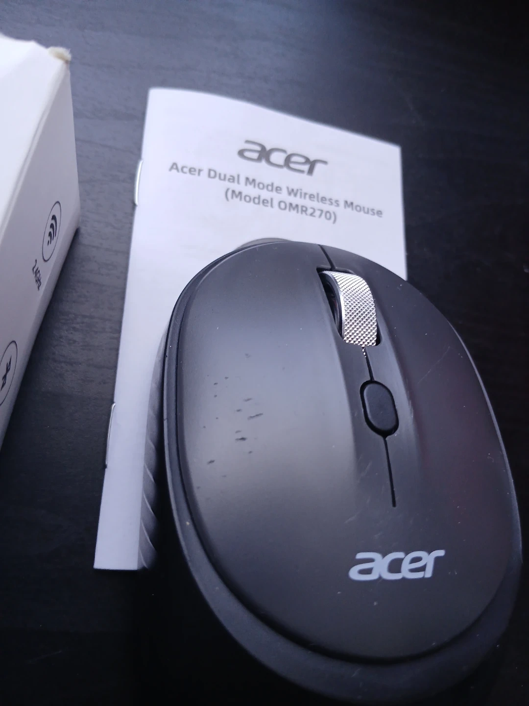 This is an Acer Dual Mode Wireless Mouse, model OMR270. It supports both 2.4G and Bluetooth connections. It's a wireless mouse for your computer needs.