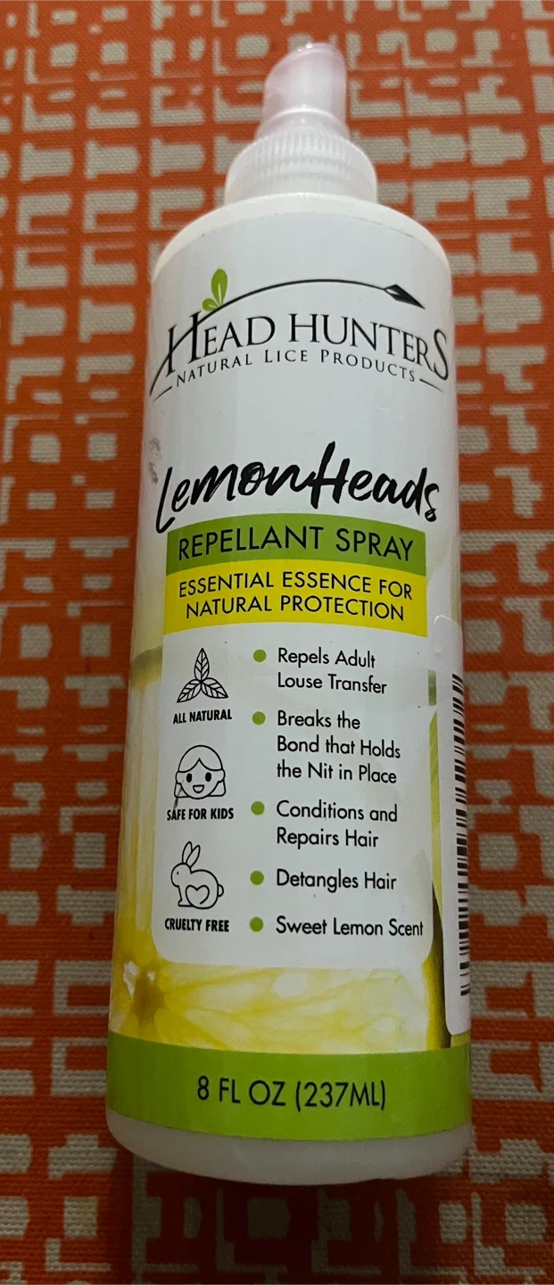 This Head Hunters LemonHeads repellent spray is professionally formulated for natural protection from head lice. It's safe for kids and detangles hair with a sweet lemon scent. The 8 fl oz bottle is perfect for daily use all summer long.
