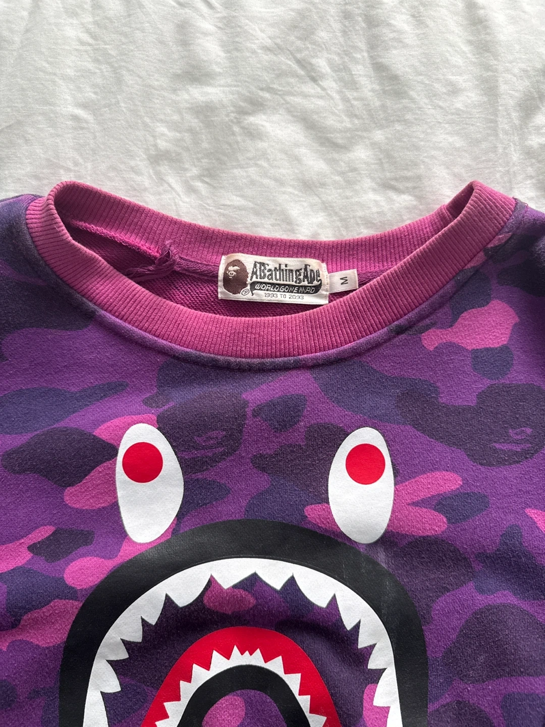 A Bathing Ape BAPE Shark Camo Crewneck Sweatshirt Purple Size M
