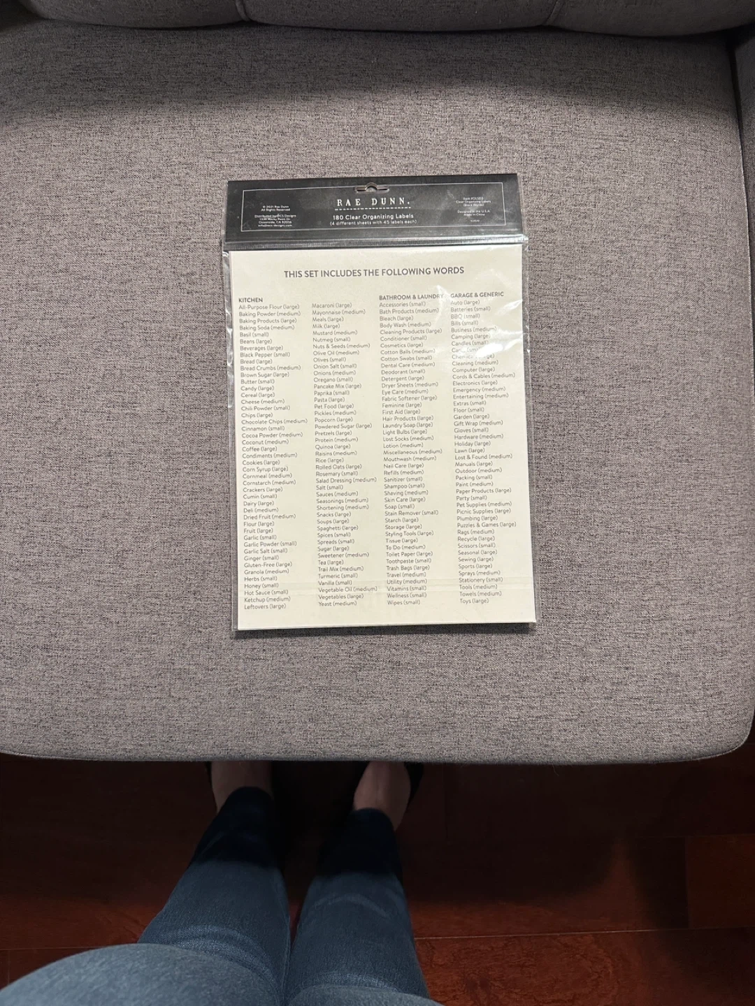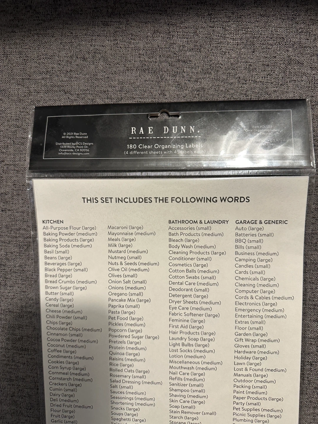 This set includes 180 clear organizing labels from Rae Dunn. The labels come on 4 different sheets with 45 labels per sheet. They are designed for kitchens, bathrooms, laundry, and garage & generic use.