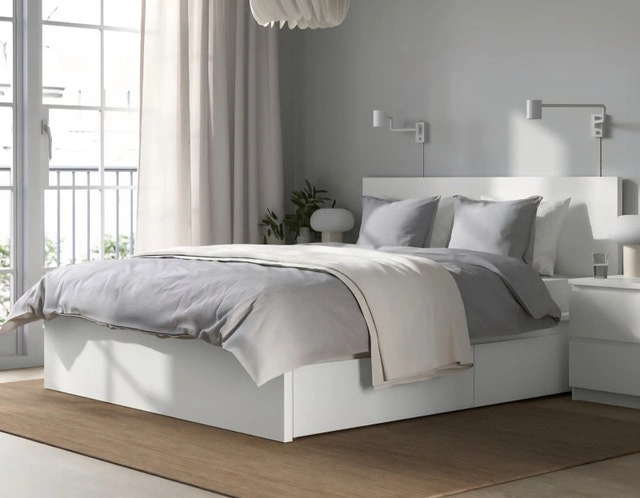 This is a modern white Ikea MALM bed. QUEEN bed frame with 4 storage drawers (2 on each side). Excellent condition and well maintained. No pets/non-smoking home. Willing to take the bed apart and help you load your vehicle. Asking for $200.
