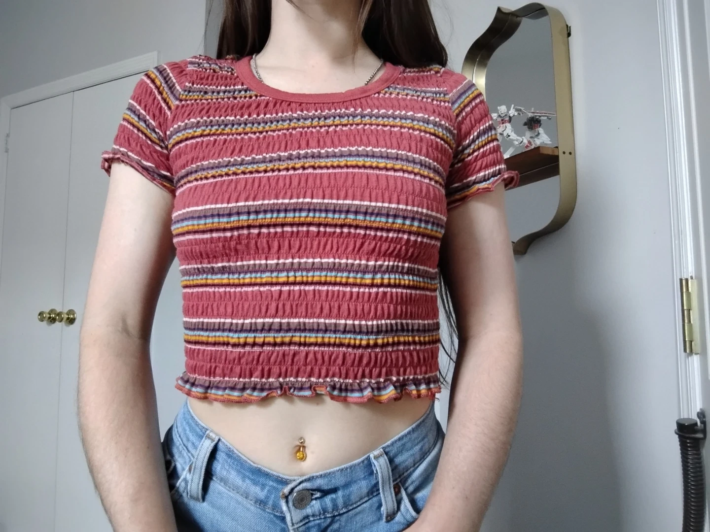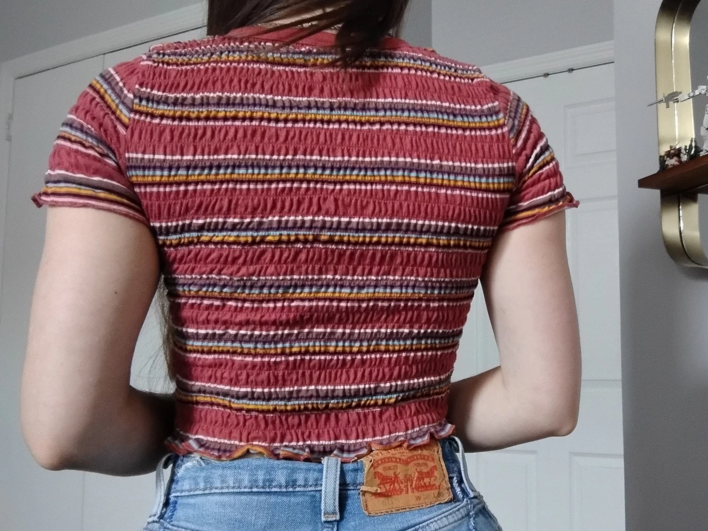 I'm more of a cool-toned gal, so I'd like to find this little beauty a new life with someone who looks good in warmer tones. If you think that's you, or someone else in your life, come get this top <3