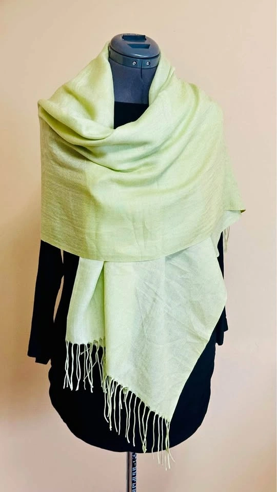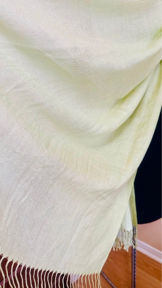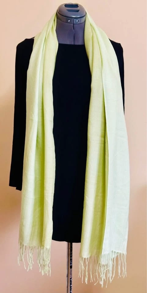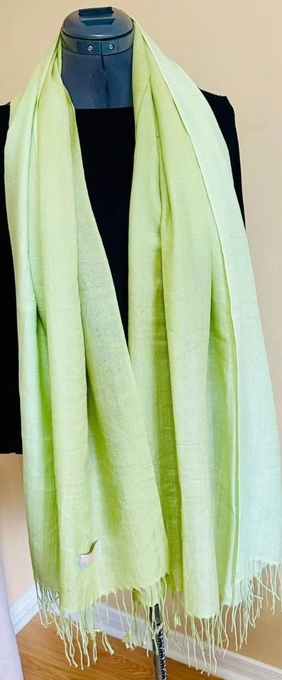 Add a touch of elegance to your outfit with this light to dark ombré green scarf. Perfect for any occasion. 100% Cashmere, very silky soft. Large enough to use as a shawl on vacation or a chilly night, or even as a wrap. Non-smoking, no pets home.