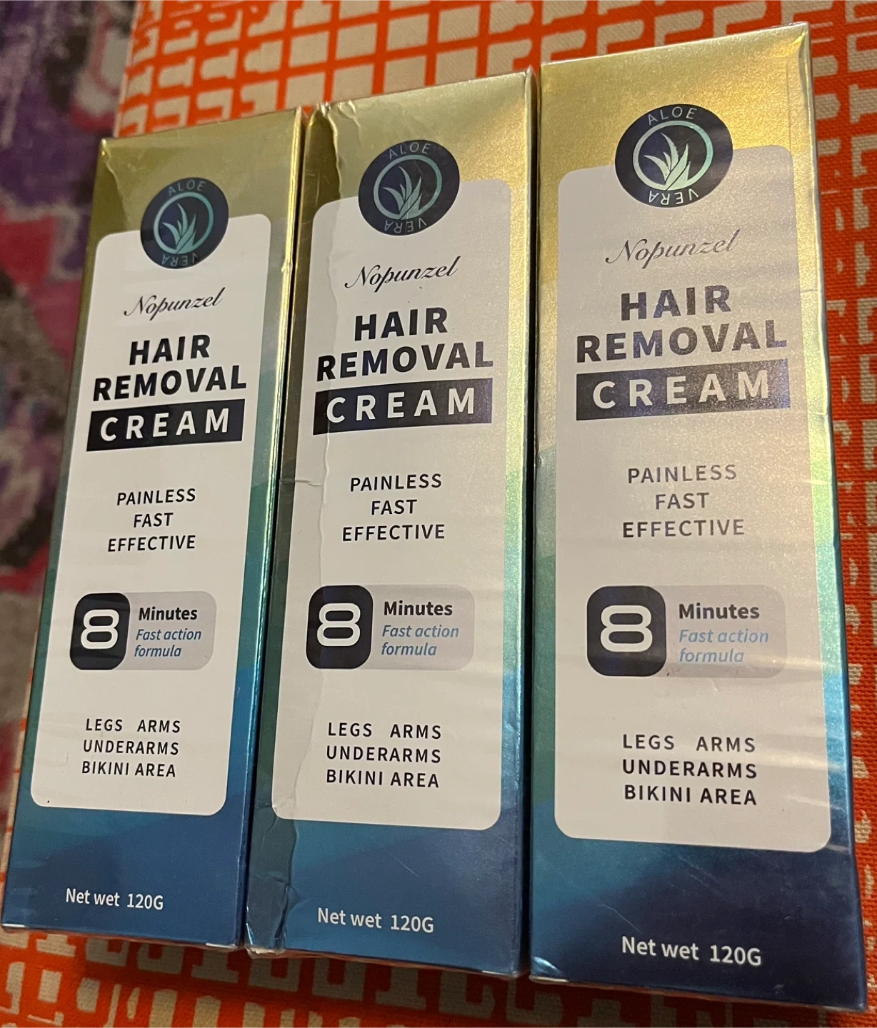 This Nopunzel hair removal cream comes in a 120G net weight. It's designed for painless and fast effective hair removal on legs, arms, underarms, and bikini areas. The formula is a fast-action type, working within 8 minutes.