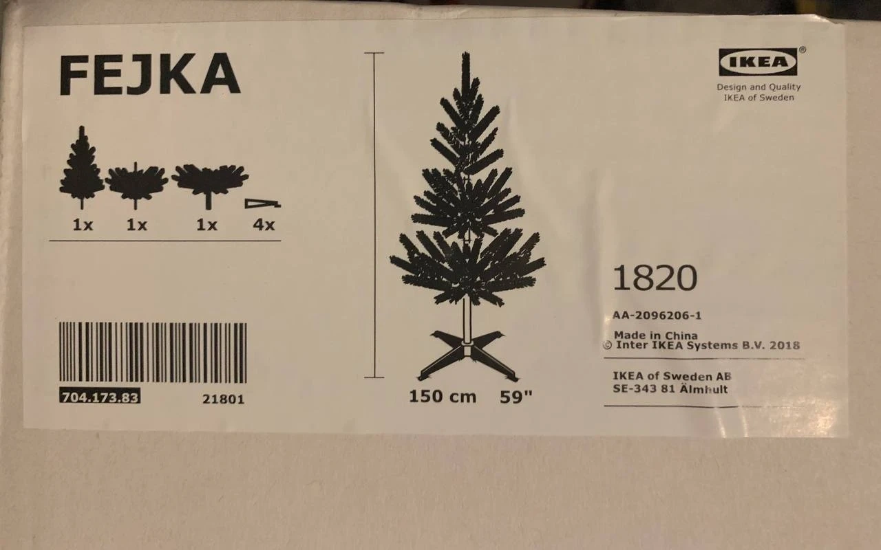 Selling a gently used IKEA FEJKA artificial Christmas tree. It's 59 inches tall and comes with the original box. Perfect for adding some festive cheer to your home!