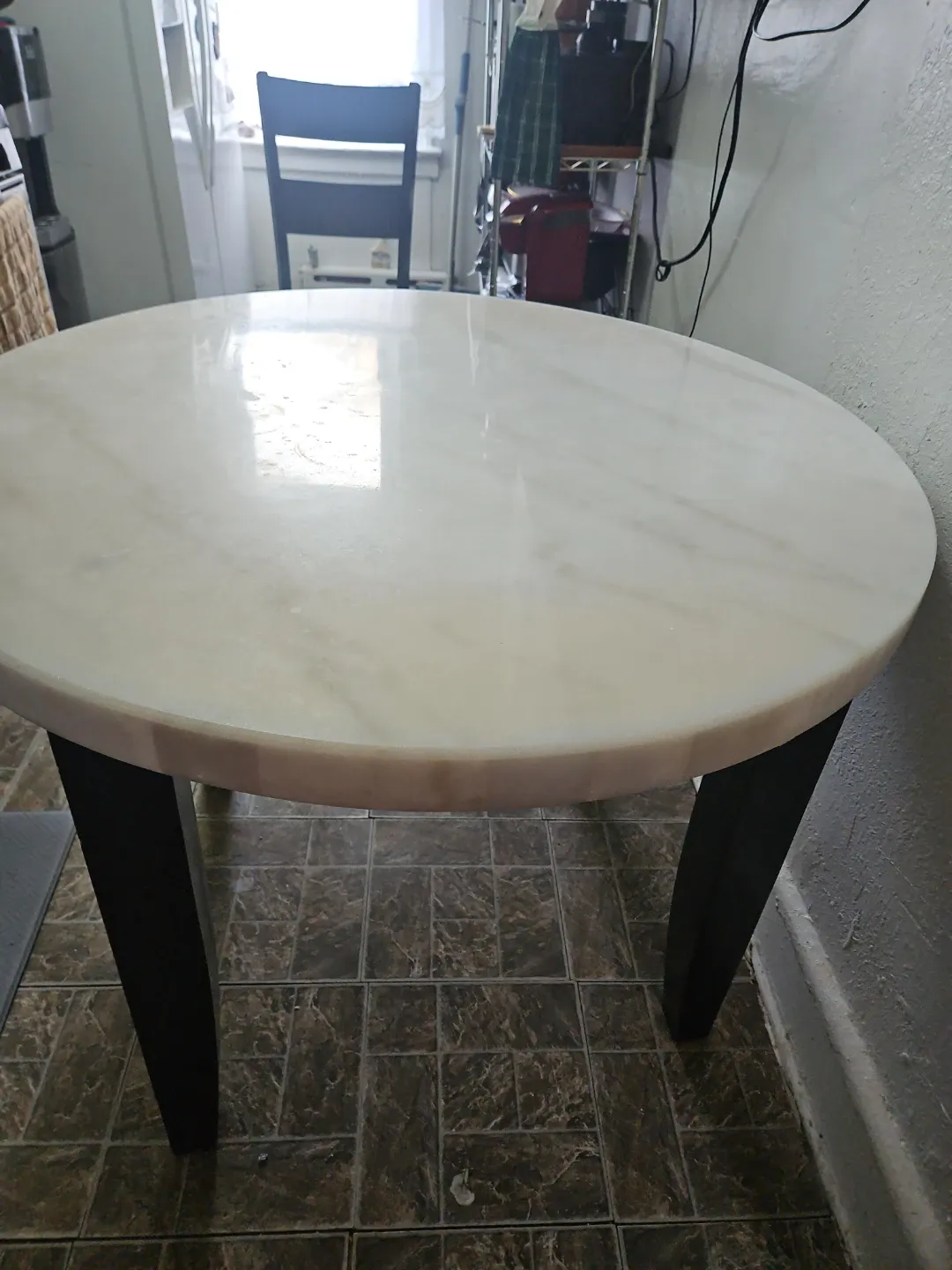 Oval Marble Top Dining Table with Dark Wood Legs