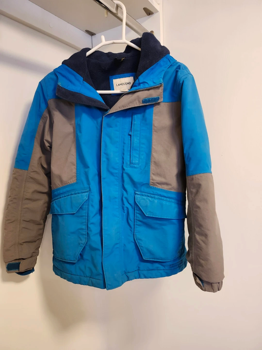 Lands' End unisex winter jacket. It's waterproof, windproof, breathable, and features an antistatic fleece lining. This garment has Grow-A-Longs to extend sleeves.