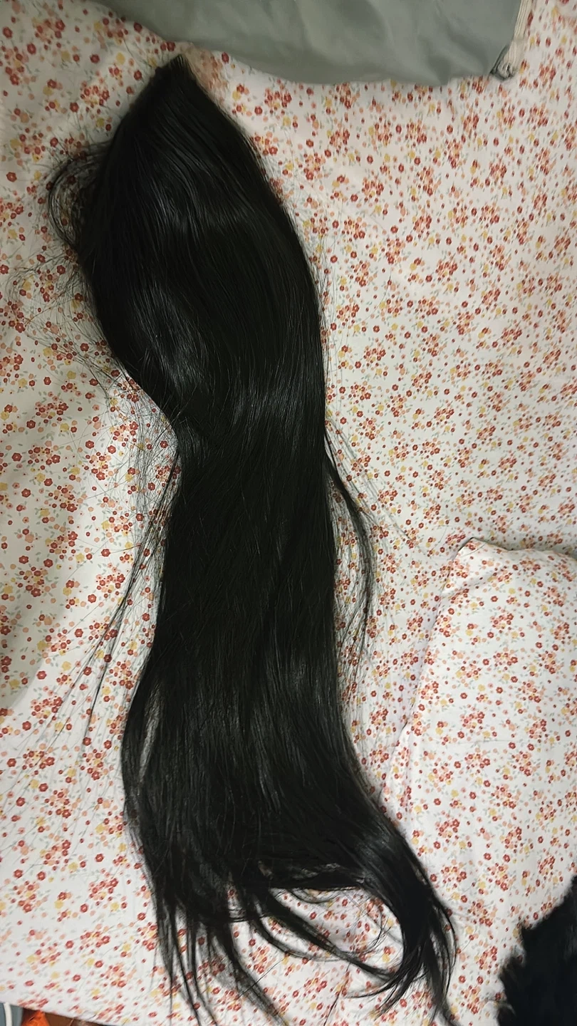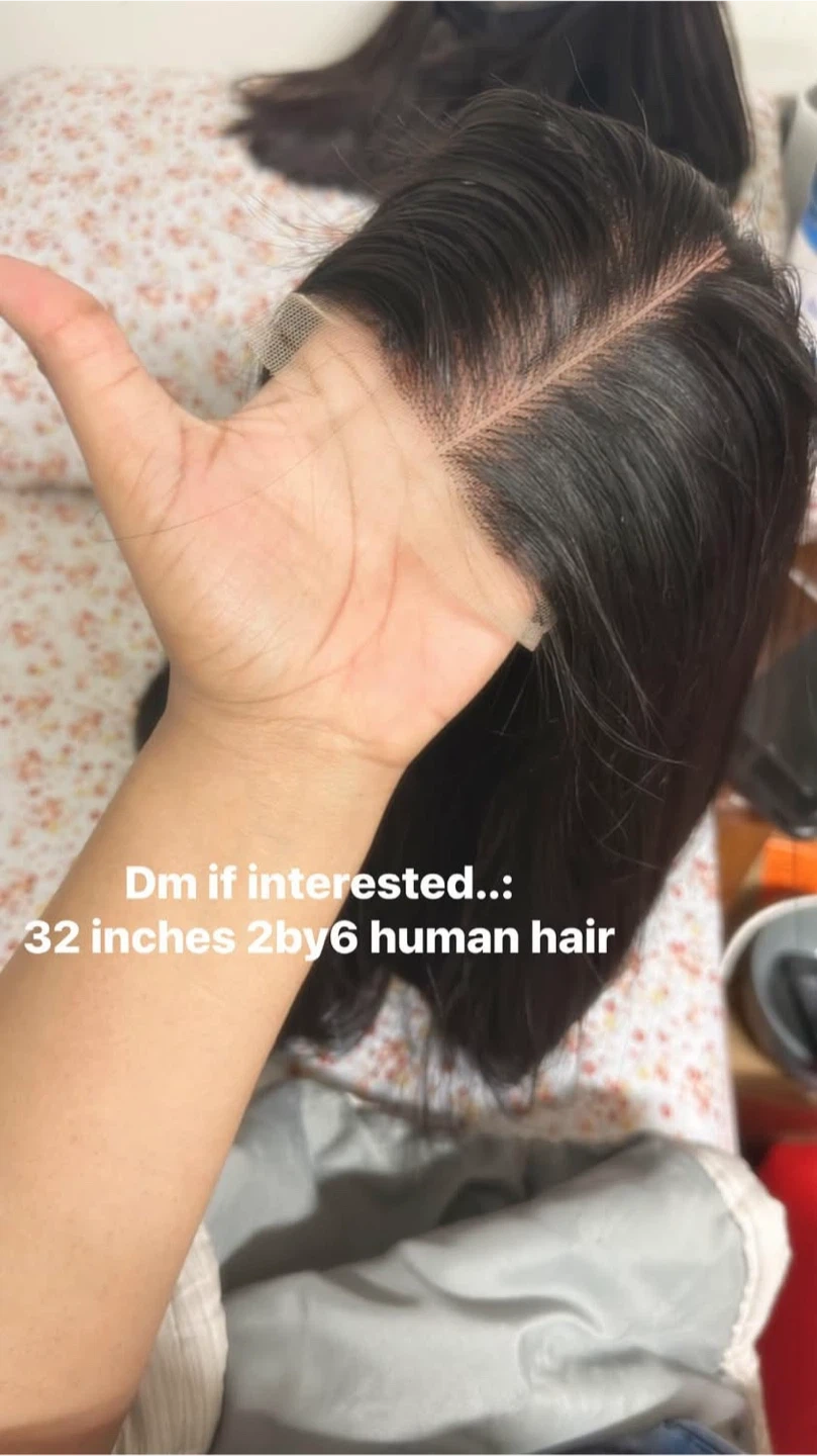 This is a 32-inch, straight, human hair wig. It's a 2x6 lace closure unit with a natural black colour. It's perfect for a natural look or styling for different occasions!