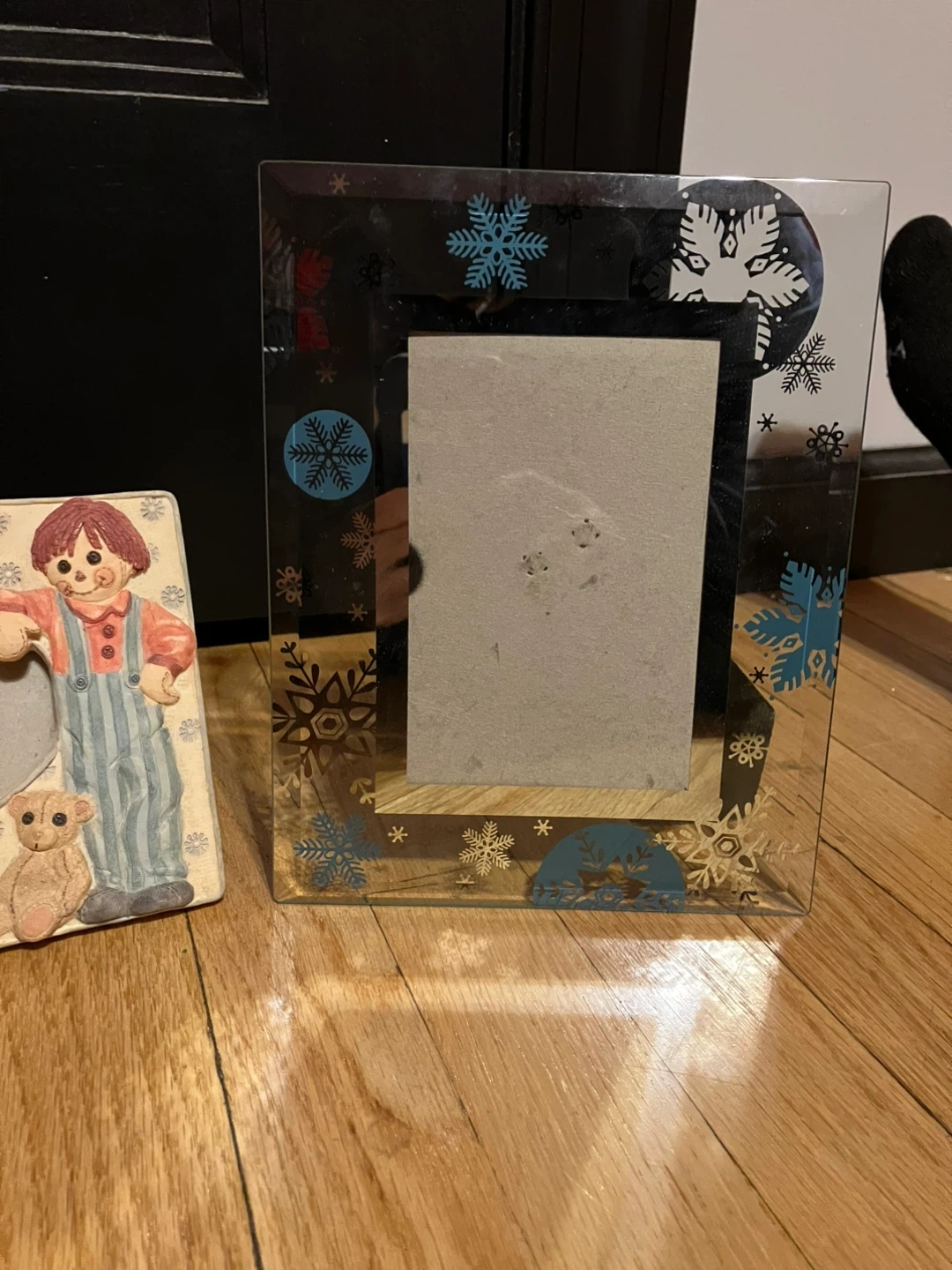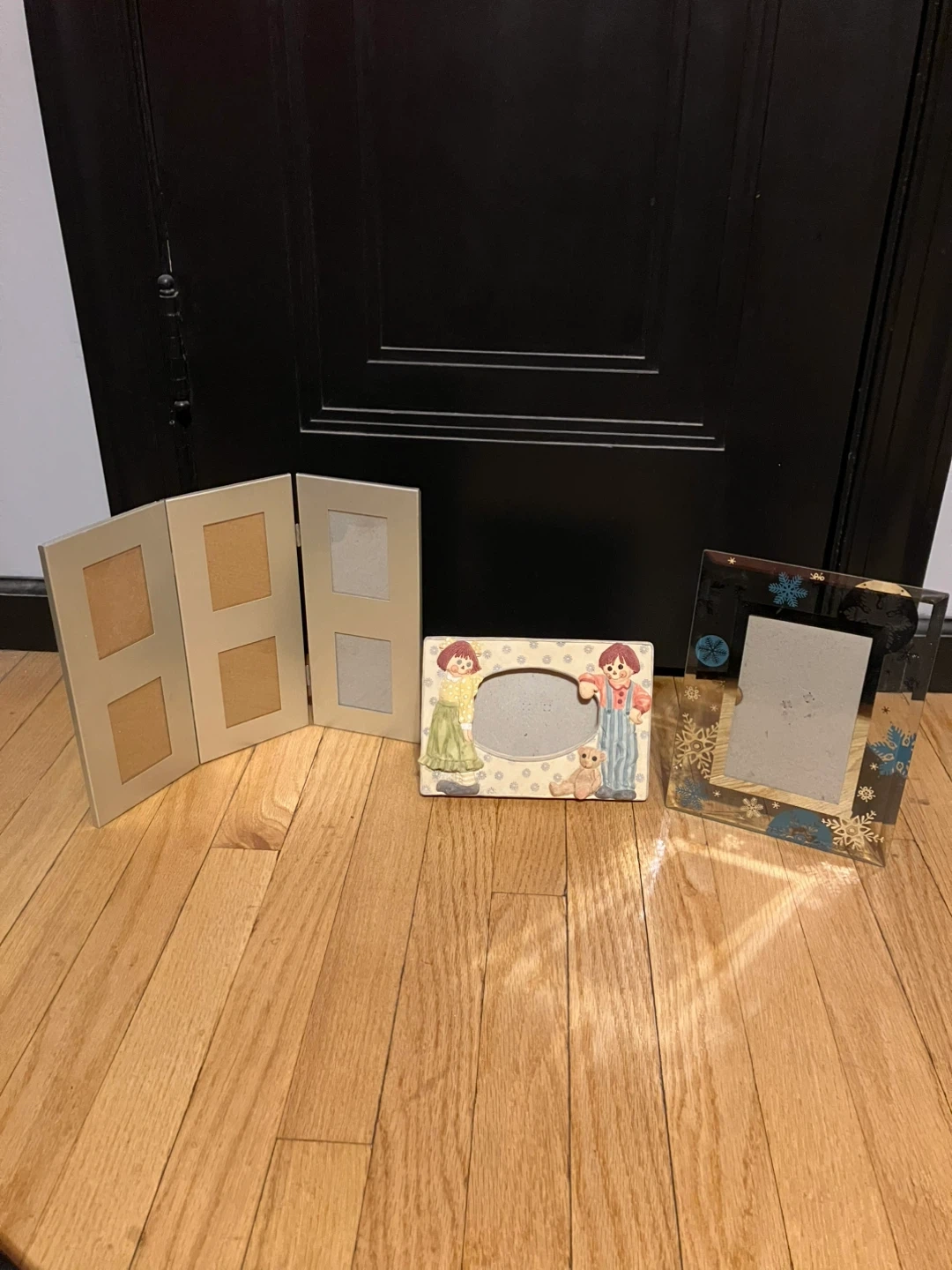 Selling a bundle of 3 picture frames. There's a folding frame and a couple of decorative ones. They're in good condition and ready to display your favorite photos! Price is for all 3!!