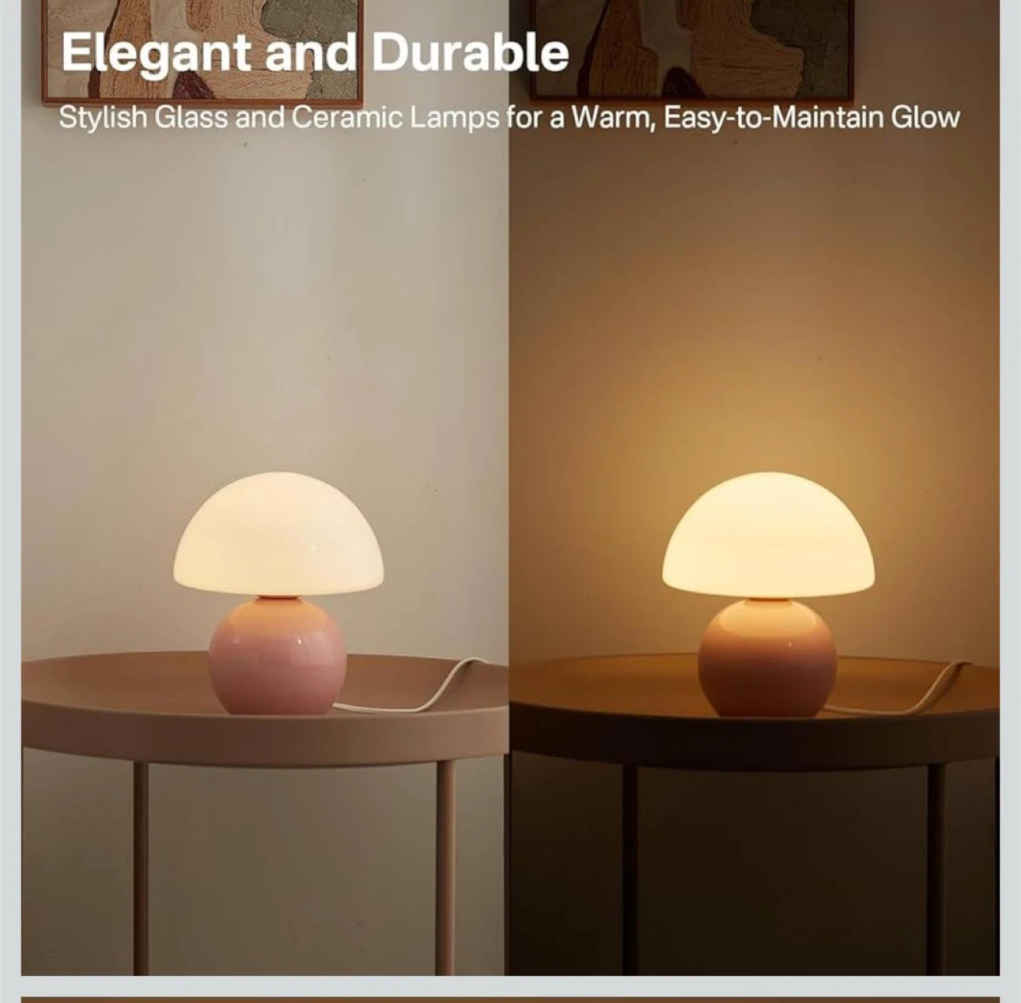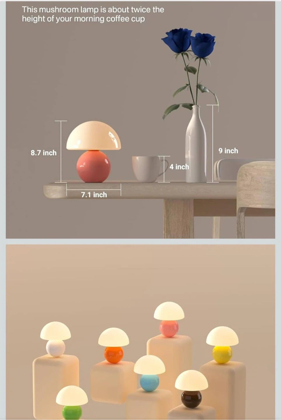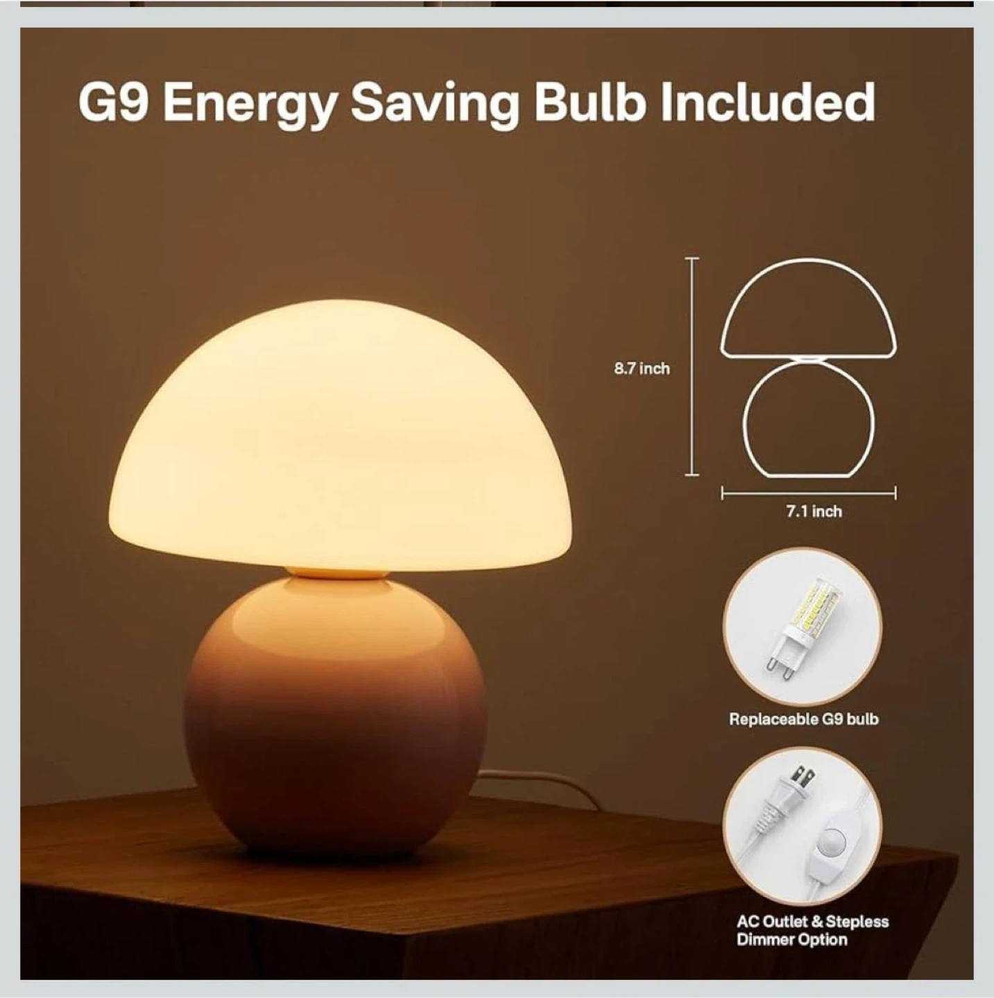 Add a touch of whimsy to your space with this adorable mushroom table lamp! It features a stylish glass and ceramic design, perfect for creating a warm and inviting glow. The lamp stands about twice the height of your morning coffee cup, making it a charming addition to any room. It also includes a G9 energy-saving bulb and has an AC outlet with a stepless dimmer option