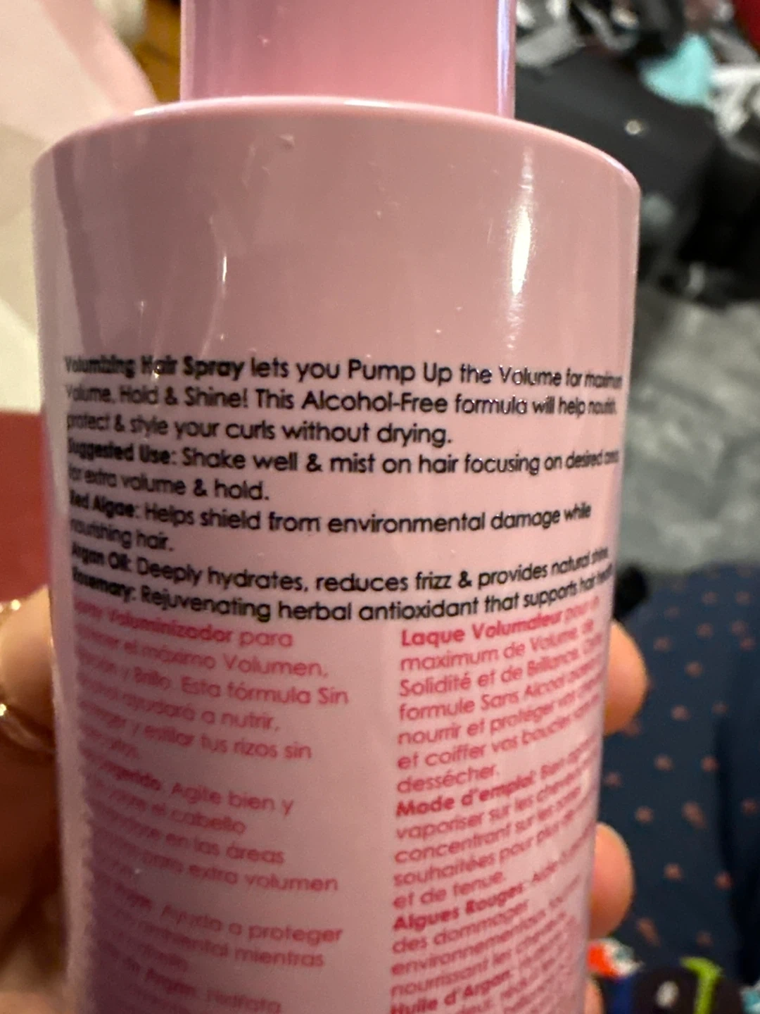 This alcohol-free volumizing hair spray helps pump up volume for softer curls. It's made with Red Algae, Argan Oil, and Rosemary. Contains 200ml / 6.8 fl. oz.