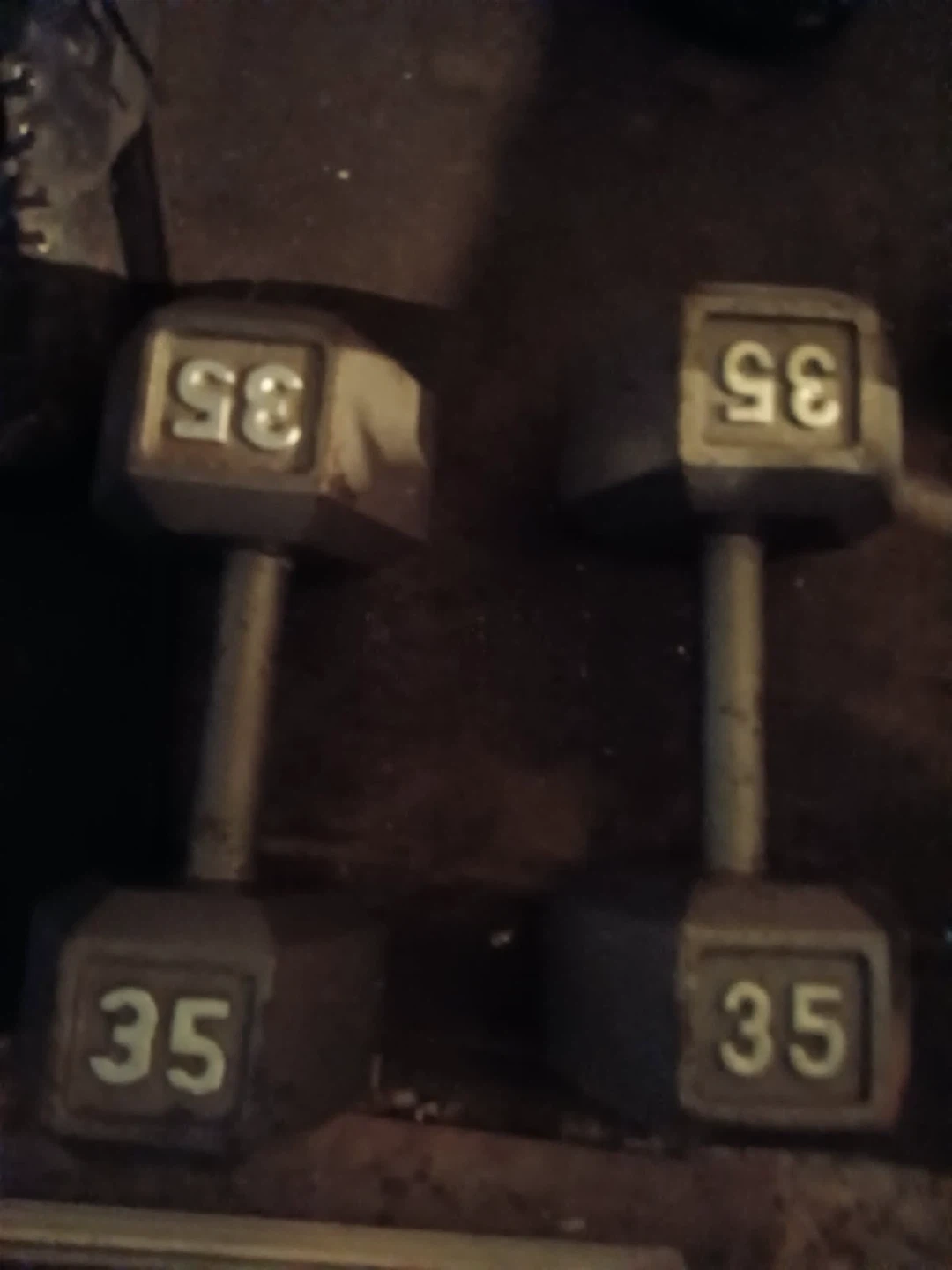 Selling a pair of 35 lb dumbbells. They're in used condition, but still have plenty of life left in them!
